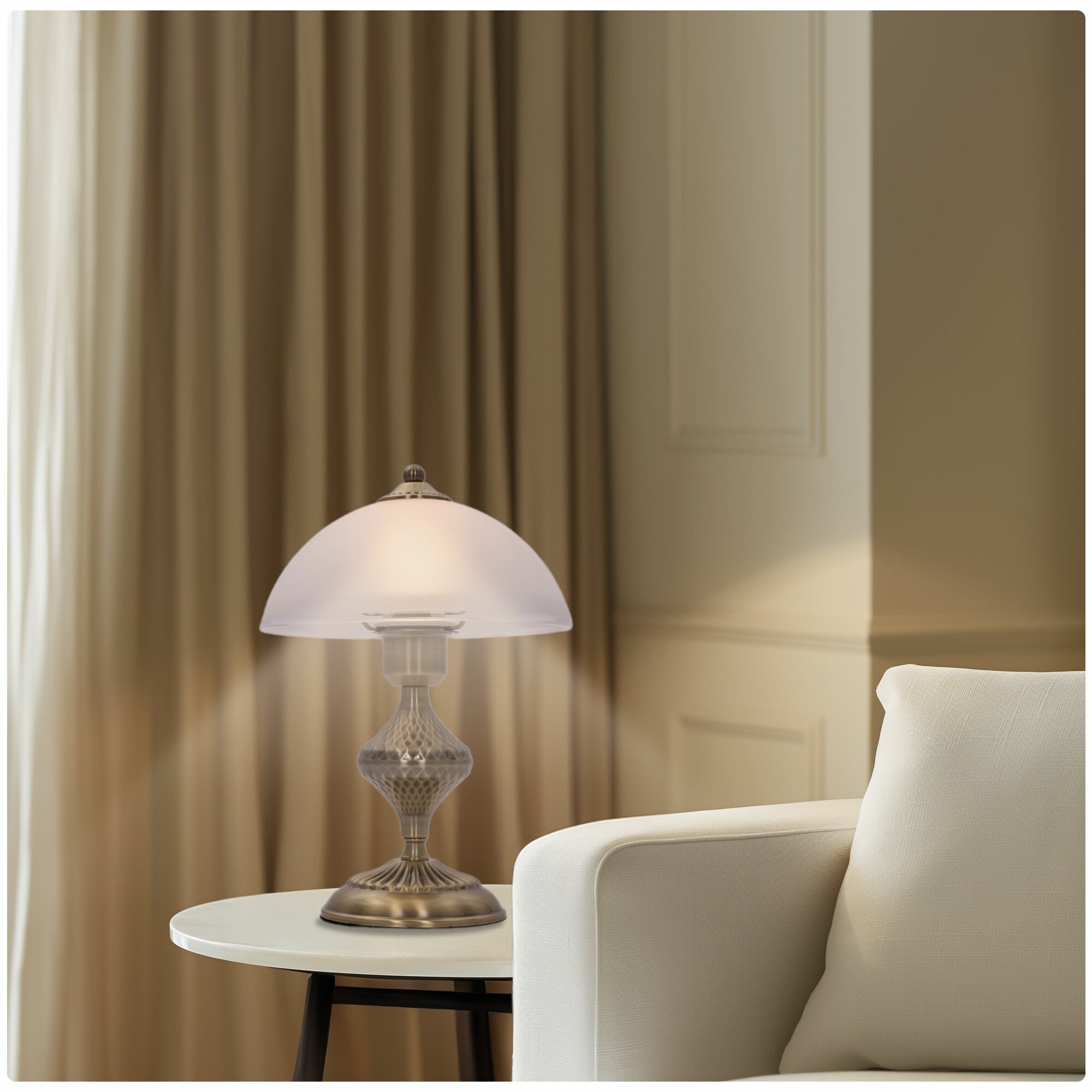 Настольная лампа Citilux Франческа выполнена в классическом стиле. Корпус металлический, благородного бронзового цвета. Плафон изготовлен из полуматового стекла с утончённой прозрачной окантовкой. В изделии используются 1 лампа с цоколем Е27 максимальной мощностью для ламп накаливания 75Вт. Высота светильника 32см, диаметр 22см, диаметр основания 13см, длина сетевого провода 1,8м. Элегантная настольная лампа Ситилюкс Франческа прекрасный предмет интерьера и отличный вариант атмосферного освещения квартир и загородных домов, уютных кафе, баров и ресторанов, оформленных в классическом стиле.