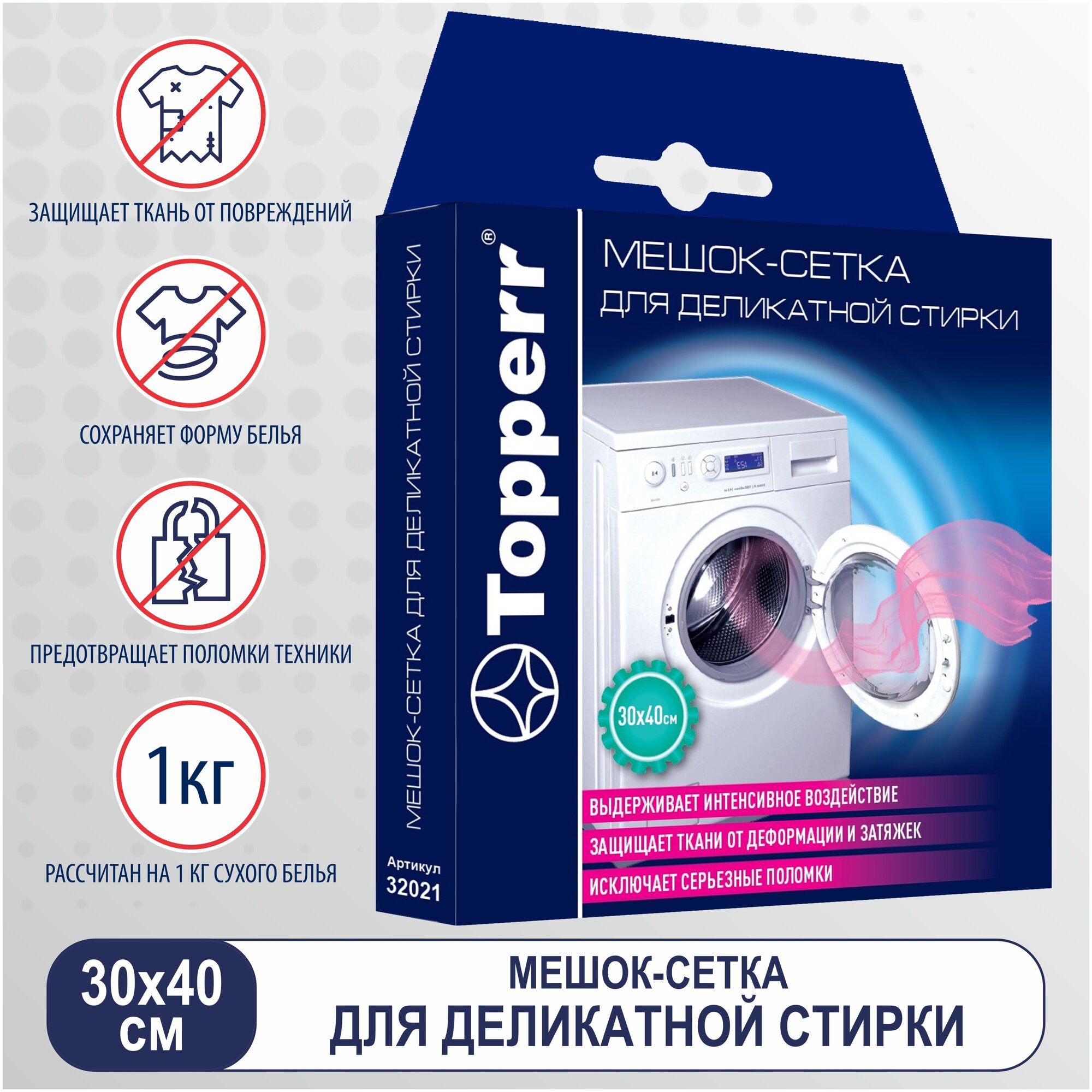 Мешок-сетка для стирки деликатных тканей защищает тонкие ткани от повреждения, помогает сохранить форму деликатного белья, а также исключает попадание мелких предметов и детских вещей во внутренние части стиральной машины. Размер сетки 30х40 см.