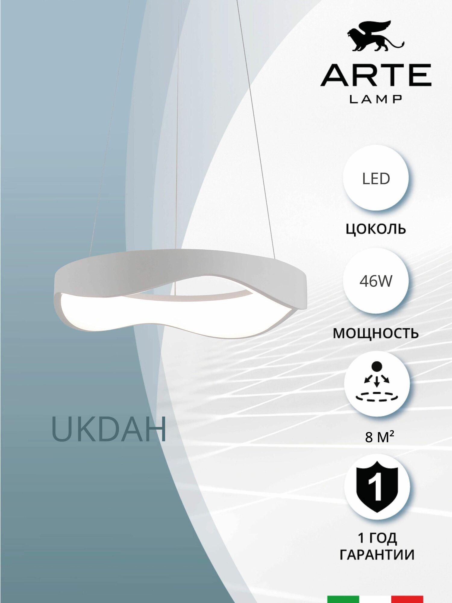 Коллекция UKDAH модель от итальянского производителя Arte Lamp является идеальным выбором для интерьеров в стиле минимализма. Подвесная люстра с размерами 40х40х6 см станет элегантным акцентом в любом помещении, подчеркивая его утонченный стиль. Люстра обладает параметрами пылевлагозащиты IP 20, что делает её подходящей для использования в различных условиях. Круглая форма и белый акриловый плафон гармонично вписываются в современные интерьеры. Арматура выполнена из металла белого цвета, что придаёт изделию дополнительную прочность и стильный вид.Встроенные светодиодные лампы рассчитаны на весь срок службы светильника, обеспечивая мощность 48 Вт и световой поток 2400 Лм. Цветовая температура варьируется от 3000 до 7000 К, позволяя создать нужную атмосферу в помещении. Площадь освещения охватывает 8 м?, что делает люстру идеальной для кухни, прихожей или офиса. Срок службы светильника составляет 20000 часов, что гарантирует долговечность и надежность. В комплект также входит пульт, что добавляет удобства в управлении освещением. Бренд Arte Lamp, известный своим качеством и элегантным дизайном, представляет эту модель как воплощение итальянского стиля и функциональности.