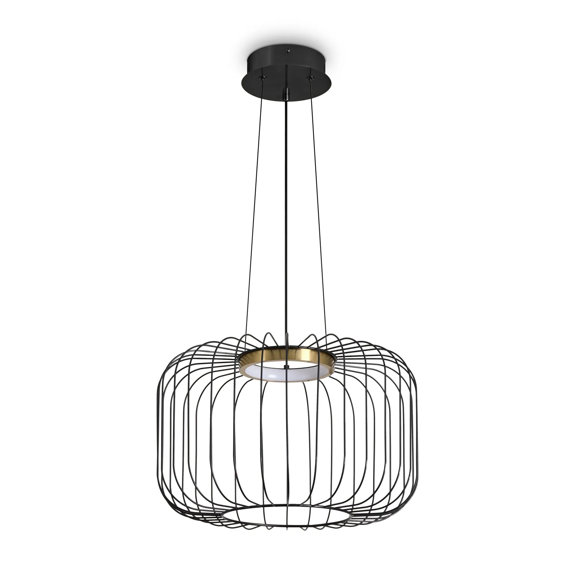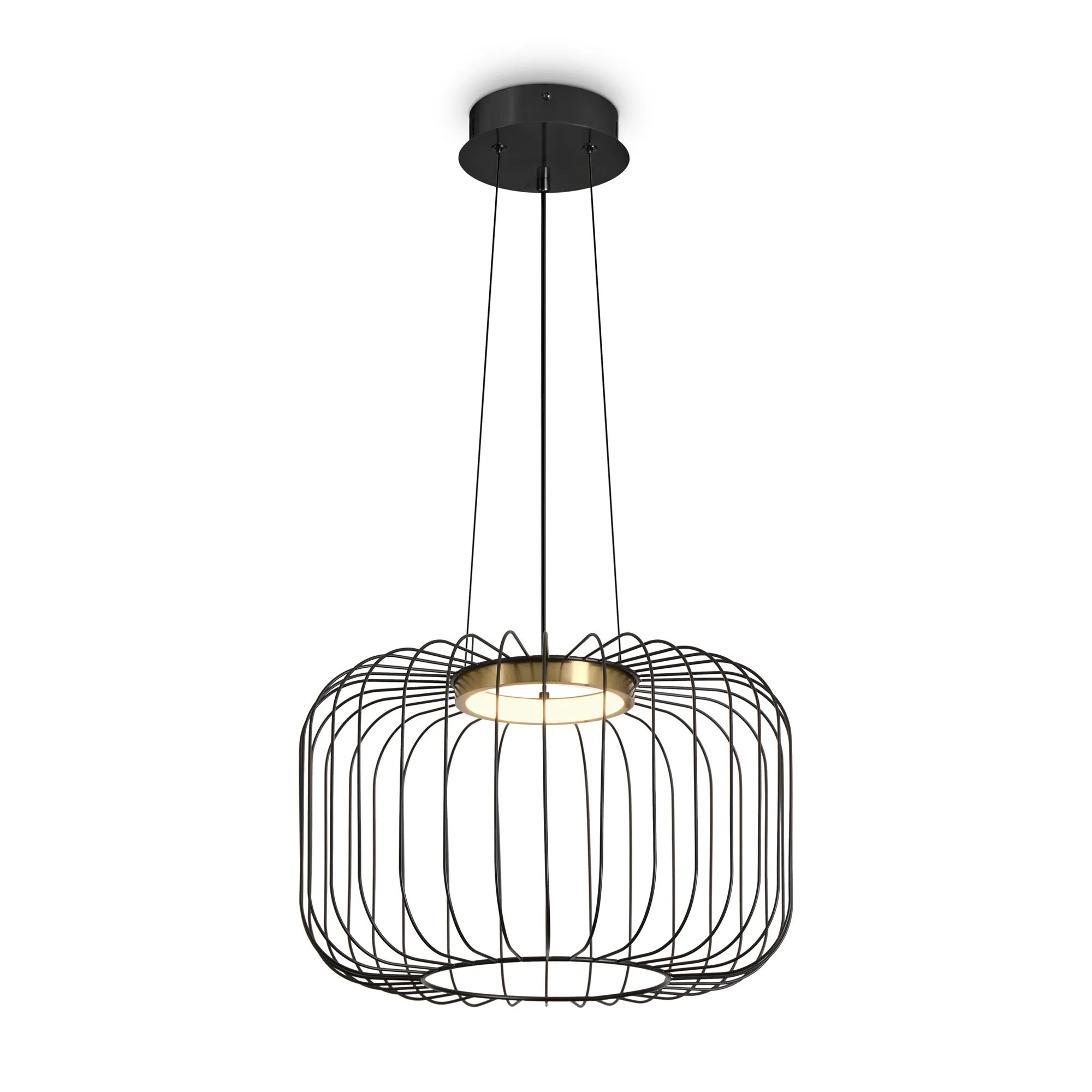 Металлическая арматура чёрного цвета. LED-источник света обрамлен декоративным металлическим кольцом цвета латунь. Минималистичный дизайн - хорошо сочетается с другими осветительными приборами. Высота подвеса регулируется. Цветовая температура - 3000К.