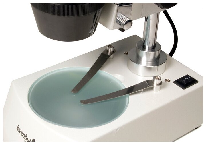 Микроскоп Levenhuk 3ST – бинокулярная модель, подходящая для использования в профессиональной экспертизе, ремонте электроники и ювелирных изделий, а также в геологических исследованиях. Большое рабочее расстояние делает его подходящим для изучения крупногабаритных образцов. Только четкое изображение. Стеклянная ахроматическая оптика с просветляющим покрытием дает яркую картинку с высокой контрастностью и правильной цветопередачей. Она позволяет выбирать два уровня увеличения – 20 и 40 крат.Встроенная подсветка. Устройство снабжено 2 лампами, расположенными по обе стороны предметного столика. Они позволяют внимательно рассматривать самые разные объекты – в том числе непрозрачные.Удобная конструкция. Наклонные окуляры с мягкими резиновыми наглазниками обеспечивают высокий уровень комфорта при длительных наблюдениях.