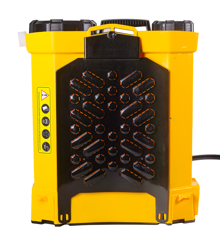 Опрыскиватель оснащен свинцово-кислотным аккумулятором с емкостью 8 А·ч и напряжением 12 В, что гарантирует длительную автономную работу без необходимости частой перезарядки.