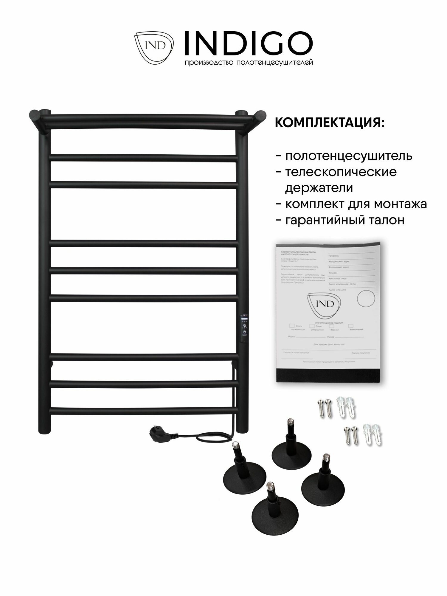 Полотенцесушитель электрический INDIGO Trinity в размере 700х400 (ВхШ) выбирают за его технологичность и универсальность. Модель оснащена терморегулятором нагрева, у которого три режима: 40, 45, 50 градусов и таймером на отключение через 2, 4, 6 часов. Удобная полка позволяет дополнительно хранить на полотенцесушителе изедлия. Универсальность изделия предусматривает подключение через прямой провод, который переставляется на нужную вам сторону или скрытое подключение без покупки дополнительного переходника. Длина прямого провода 1,1 метр.Специальная технология нагревательного кабеля защищает полотенцесушитель от перегрева что влияет на длительные сроки службы. В комплектации идут 4 телескопических держателя, комплект для монтажа и гарантийный паспорт.