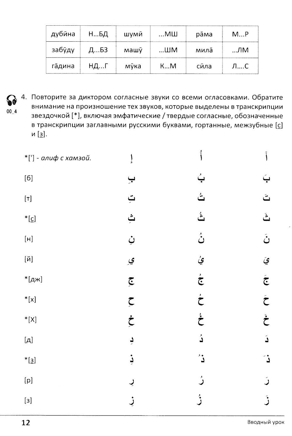Настоящий учебник предназначен для студентов 1 курса, начинающих изучать арабский язык, а также для всех желающих овладеть навыками аудирования и говорения на арабском литературном языке. Учебник сопровождается аудиозаписями всего тестового материала, что позволяет быстро обучиться пониманию арабского языка и говорению на нем.