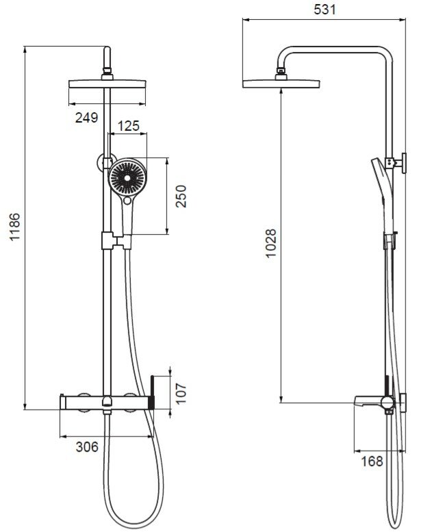 - Размер ручного душа (ШхВ): 125х250 мм.