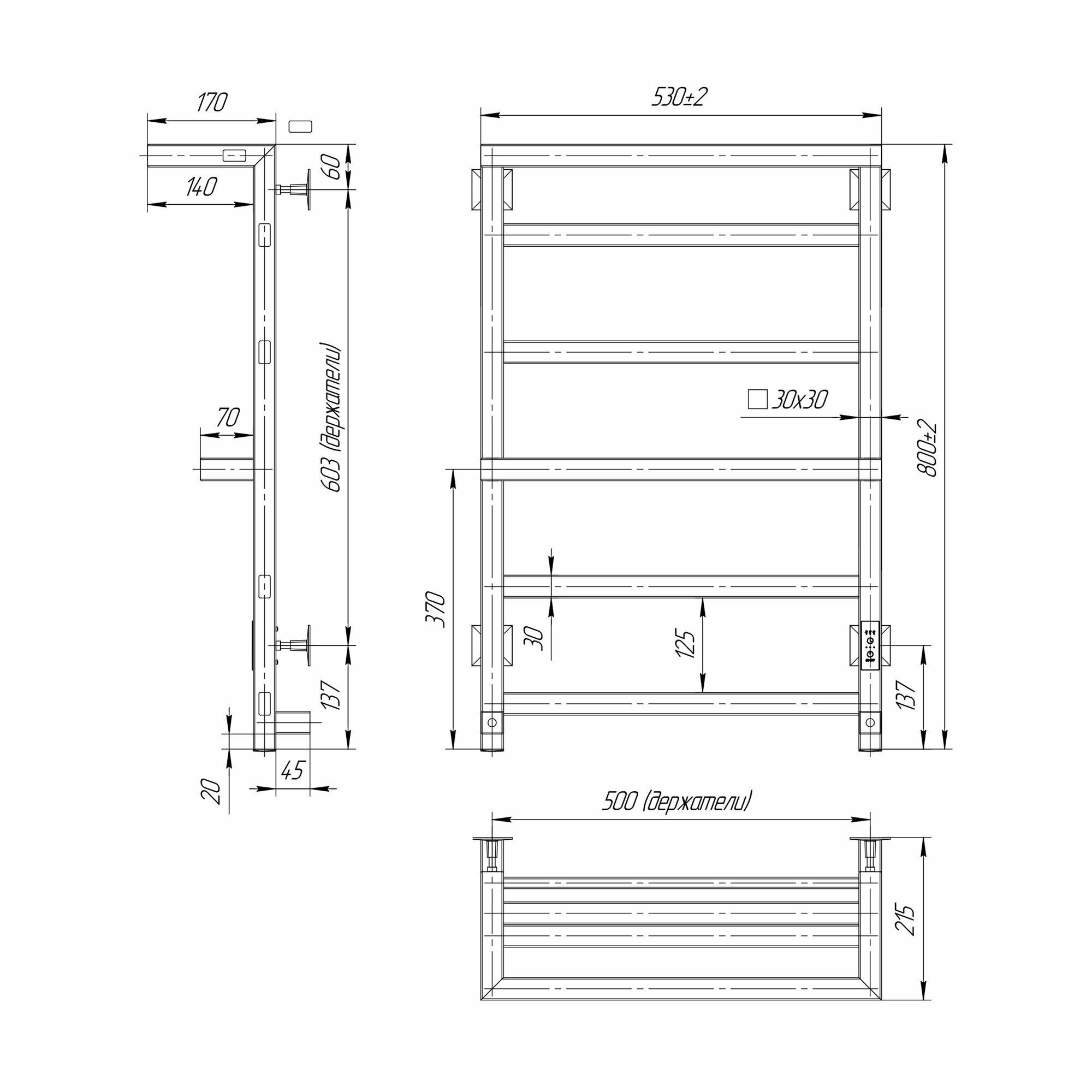 Полотенцесушитель электрический INDIGO Forte в размере 800х500 (ВхШ) в цвете черный матовый. Профильный полотенцесушитель с полкой, имеет одну скобообразную перекладину, на которой удобно будет разместить большое полотенце или другой текстиль на просушку. Модель имеет терморегулятор нагрева, у которого три режима: 40, 45, 50 градусов и таймер на отключение через 2, 4, 6 часов. Подключение осуществляется двумя способами: скрытое подключение к электропроводке через модуль скрытого подключения в стену или прямым электропроводом. Длина прямого провода 1,1 метр. Изделие окрашено порошковой краской по специальной технологии, которая придает ему матовое, тактильно приятное покрытие, без разводов во время эксплуатации. Специальная технология нагревательного кабеля защищает полотенцесушитель от перегрева, что влияет на длительные сроки службы. В комплектации идут 4 телескопических держателя, комплект монтажа и гарантийный паспорт.