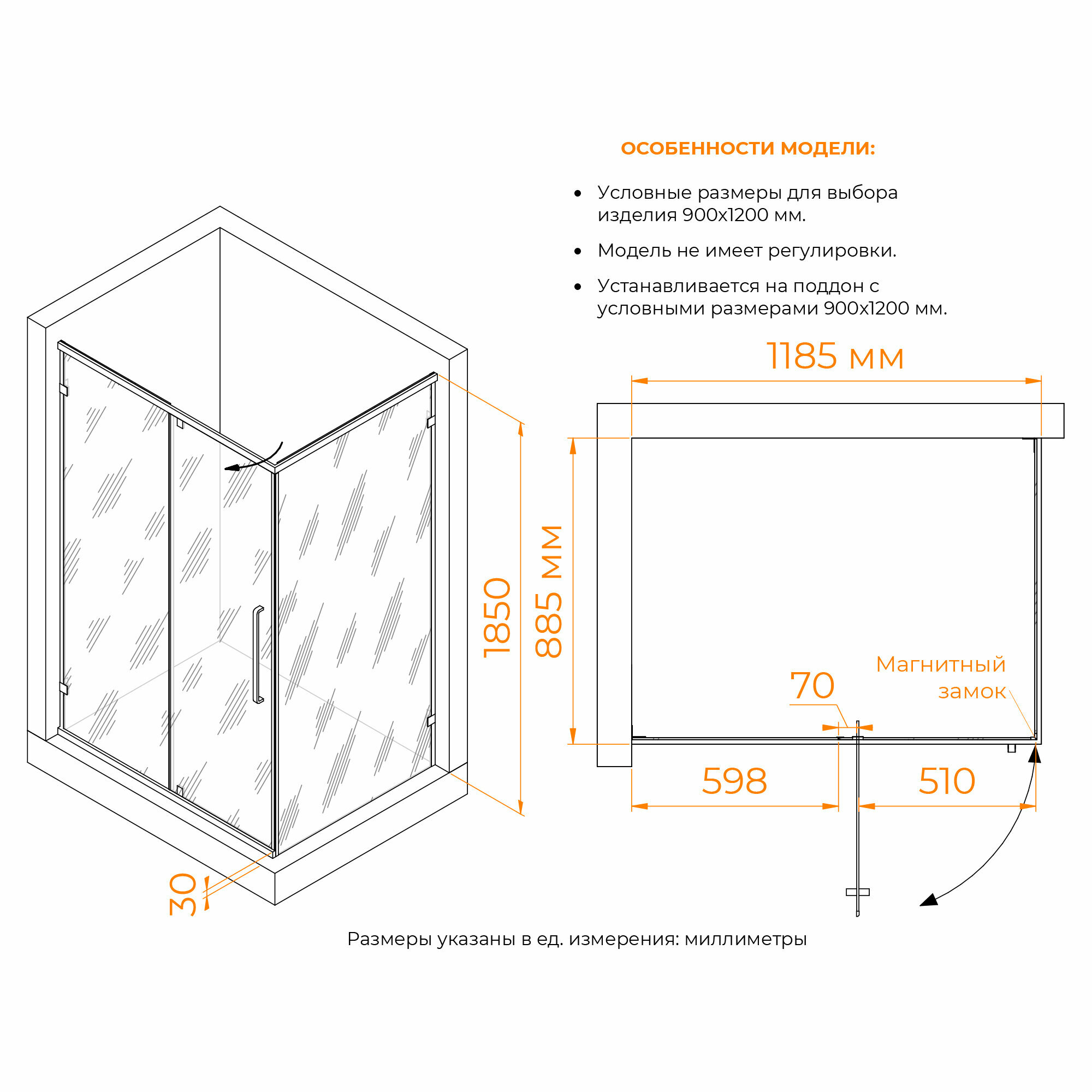 - Размеры (ШхВхД): 1185х1850х885 мм.