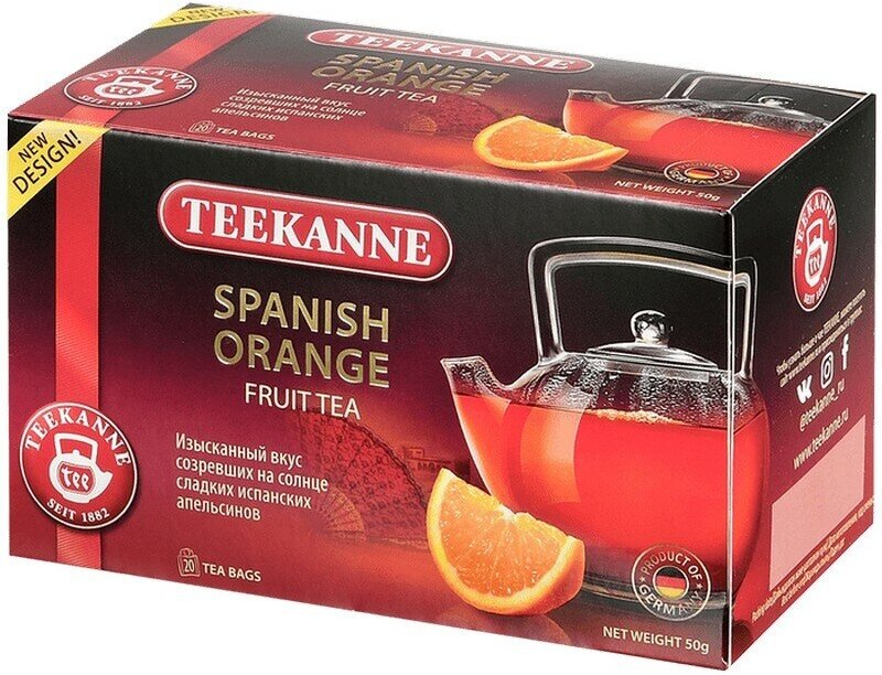 Наиболее выделяющимся преимуществом чая Teekanne spanish orange является его натуральная составляющая. Богатое сочетание яблока, гибискуса, листьев сладкой ежевики и белого ги придают этому чаю освежающий и насыщенный вкус.