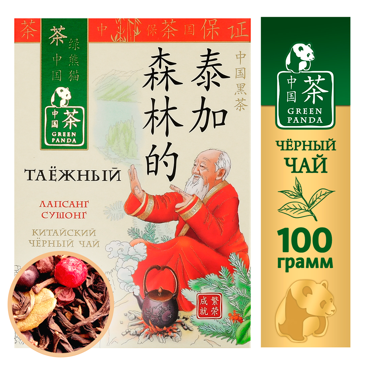 Green Panda "Таёжный" - удивительный чай с глубоким красно-бордовым настоем, пикантным насыщенным вкусом и ярким копчёным ароматом. По древней китайской технологии чайный лист бережно коптят на сосновых дровах, получая Лапсанг Сушонг, с которым идеально сочетаются натуральные таёжные ягоды. Прекрасно тонизирует, наполняет организм бодростью и энергией.