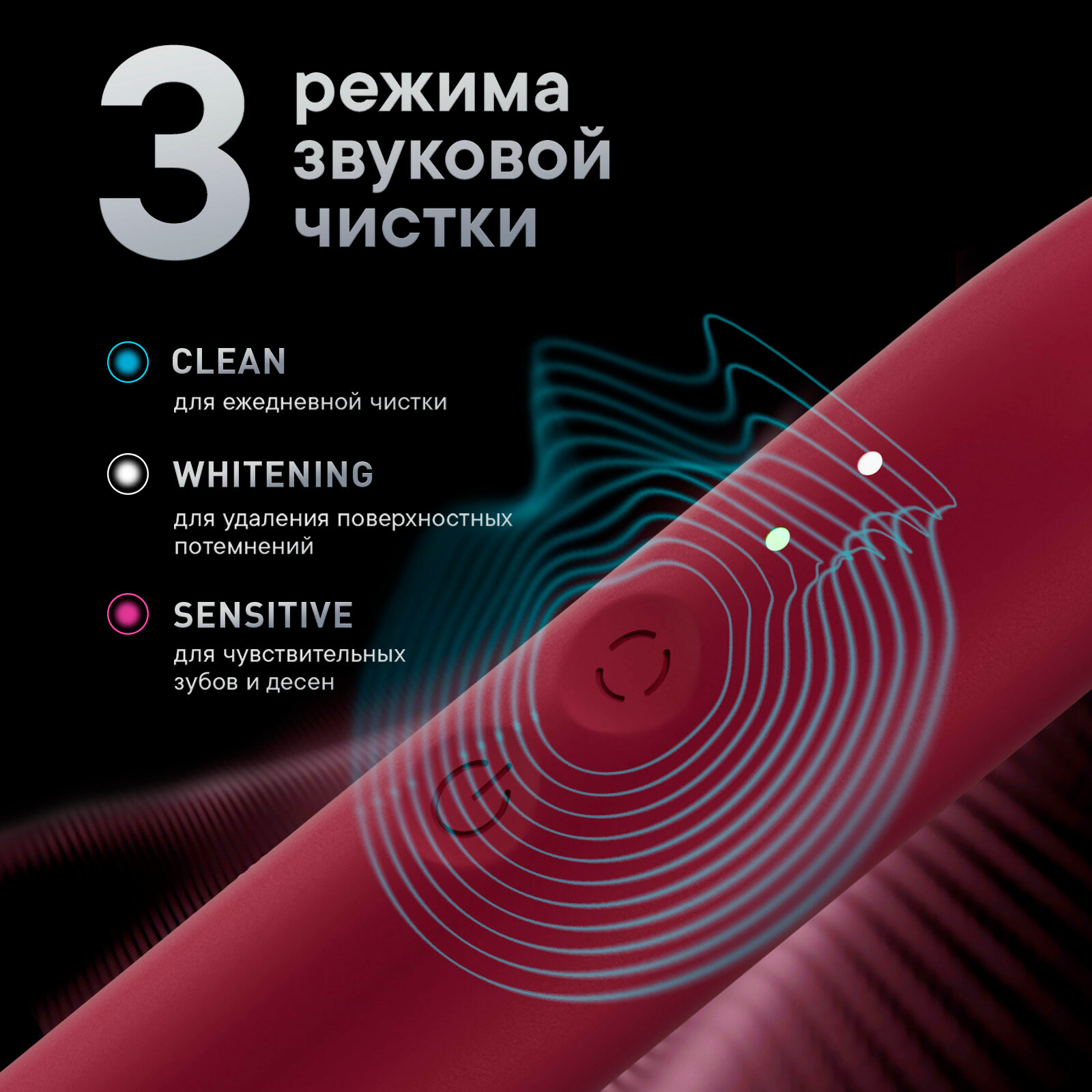 - 3 режима работы: Режим Clean для ежедневной чистки, режим Whitening отбеливающая чистка, режим Sensitive деликатная чистка.