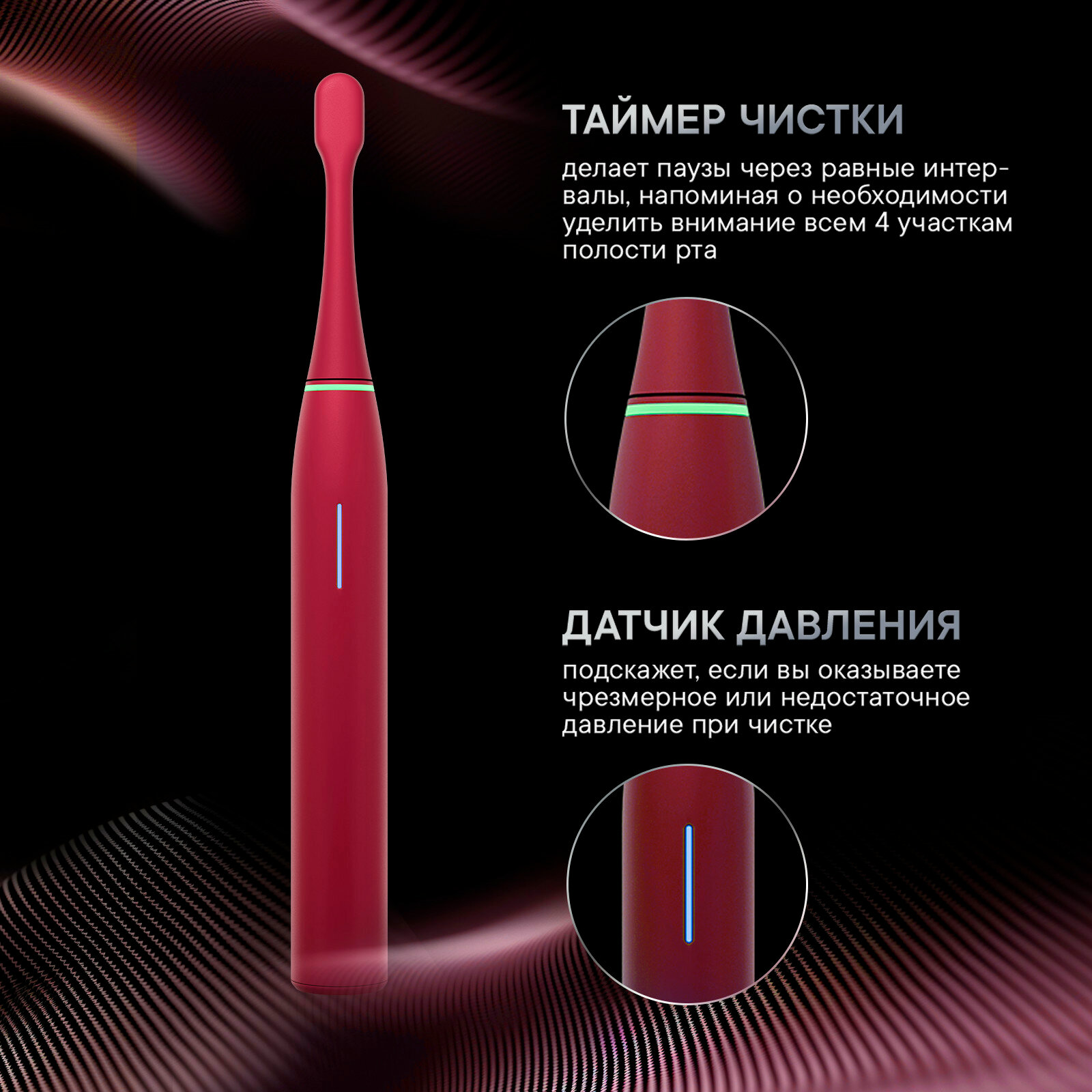 Электрическая звуковая зубная щетка SPLAT в красном дизайне сочетает передовые технологии и комфорт использования.