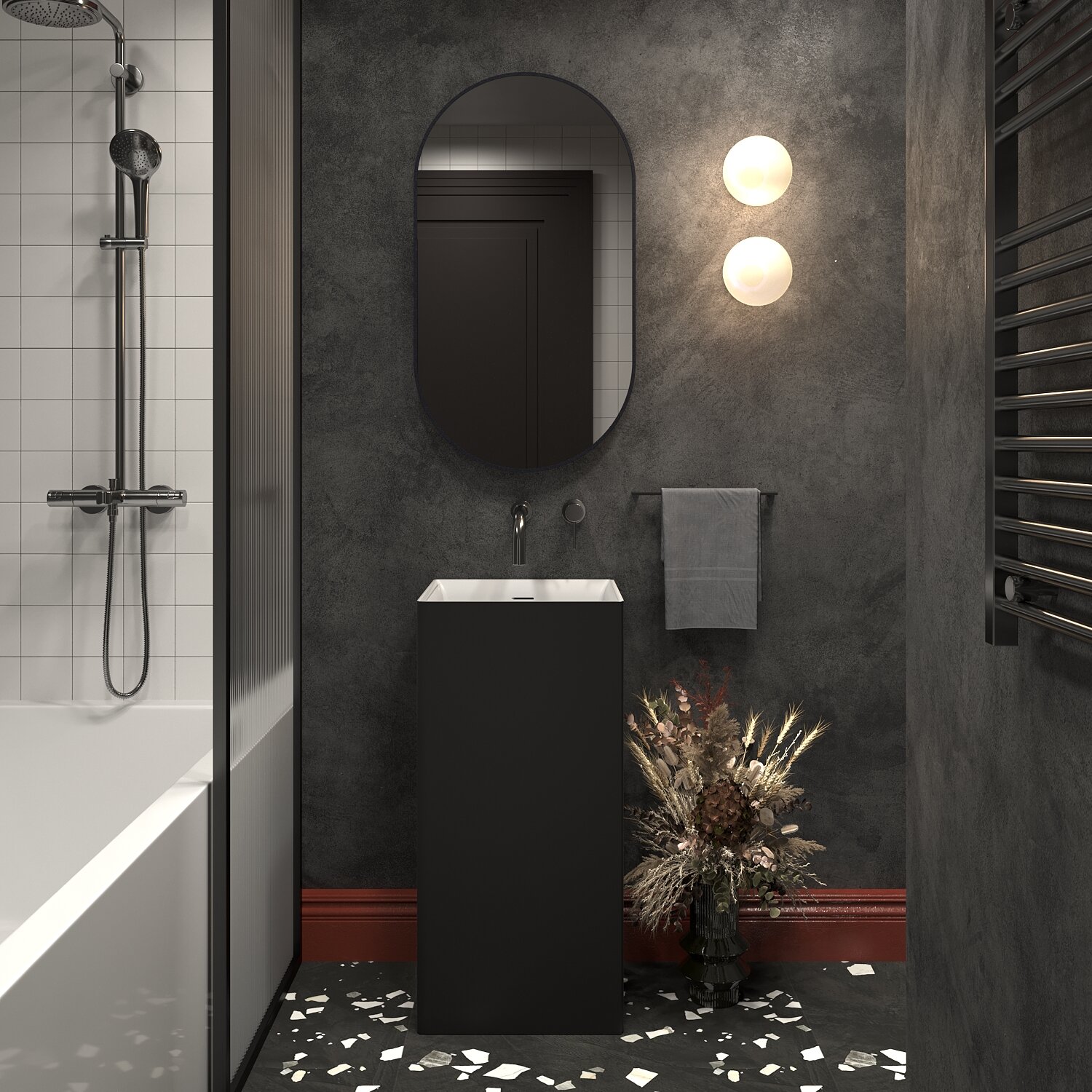 Раковина Wellsee Pure BY Wellsee 40х40 напольная отдельностоящая черный матовый/белый глянцевый 230713000