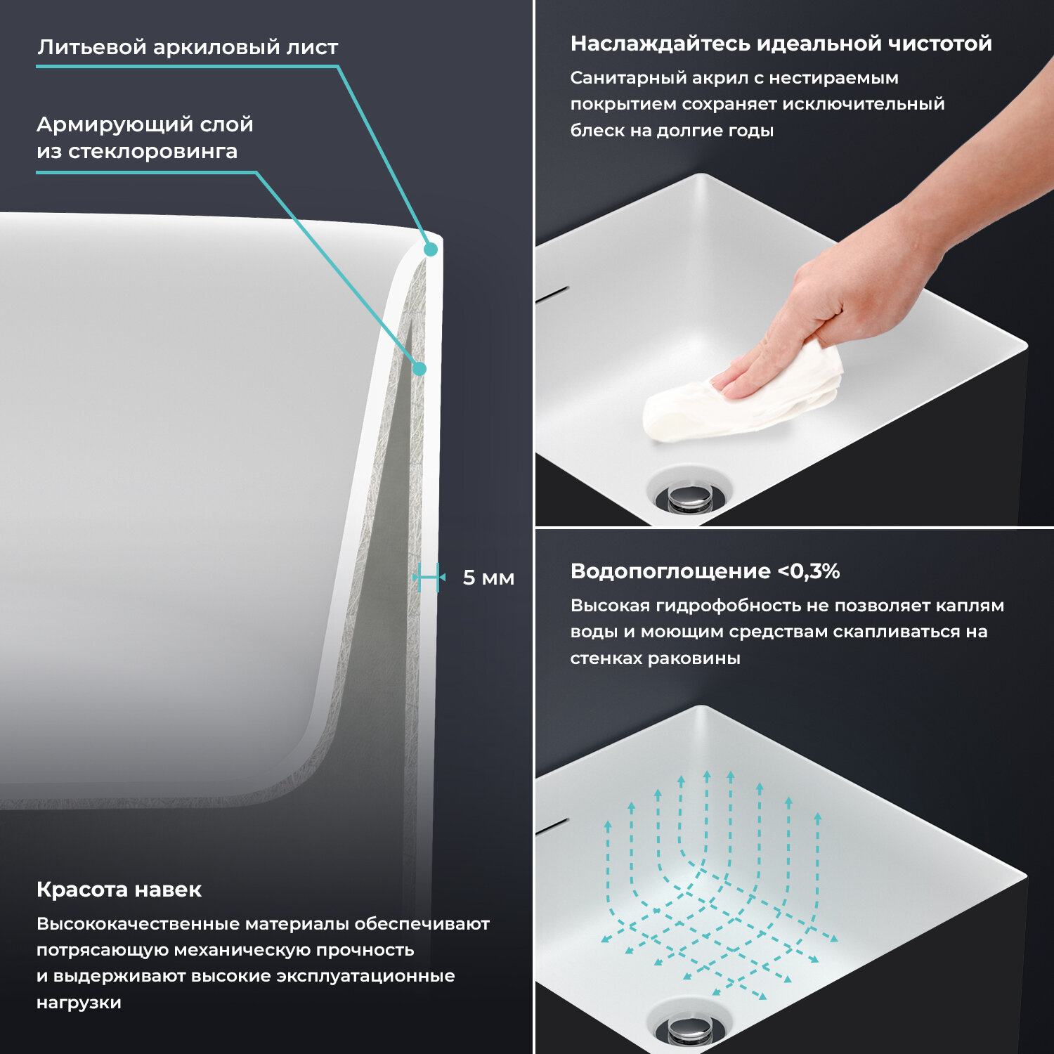 | Особенности | встроенный слив-перелив; антибактериальное покрытие |