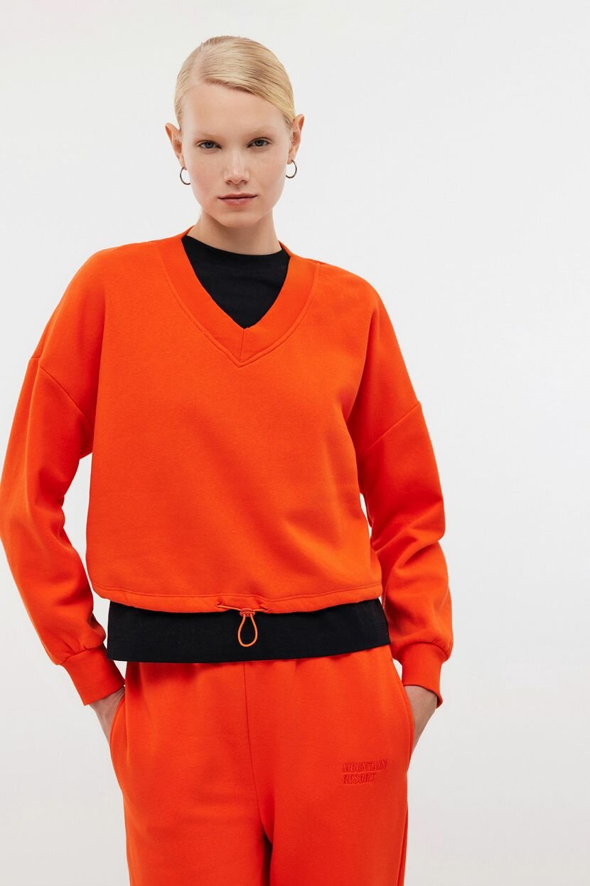 Укороченная толстовка - лаконичная и стильная база для повседневных образов в кэжуал и спортивном стиле. С ней легко составить яркие комфортные аутфиты на каждый день и наслаждаться свободой движений. Свитшот с длинным рукавом в актуальном прямом силуэте идеально садится по фигуре, нивелируя недостатки. Манжеты из фактурного трикотажа плотно прилегают к рукам. Объем низа джемпера регулируется утяжкой. V-образная горловина завершает дизайн изделия. Кофта выполнена из однотонного хлопкового футера. Мягкий и теплый материал приятен к телу. Благодаря дышащим свойствам ткани из натурального хлопка достигается оптимальная терморегуляция и ощущение длительного комфорта при ношении. Небольшое добавление полиэстера повышает устойчивость к деформации и позволяет как можно дольше сохранить презентабельный внешний вид.