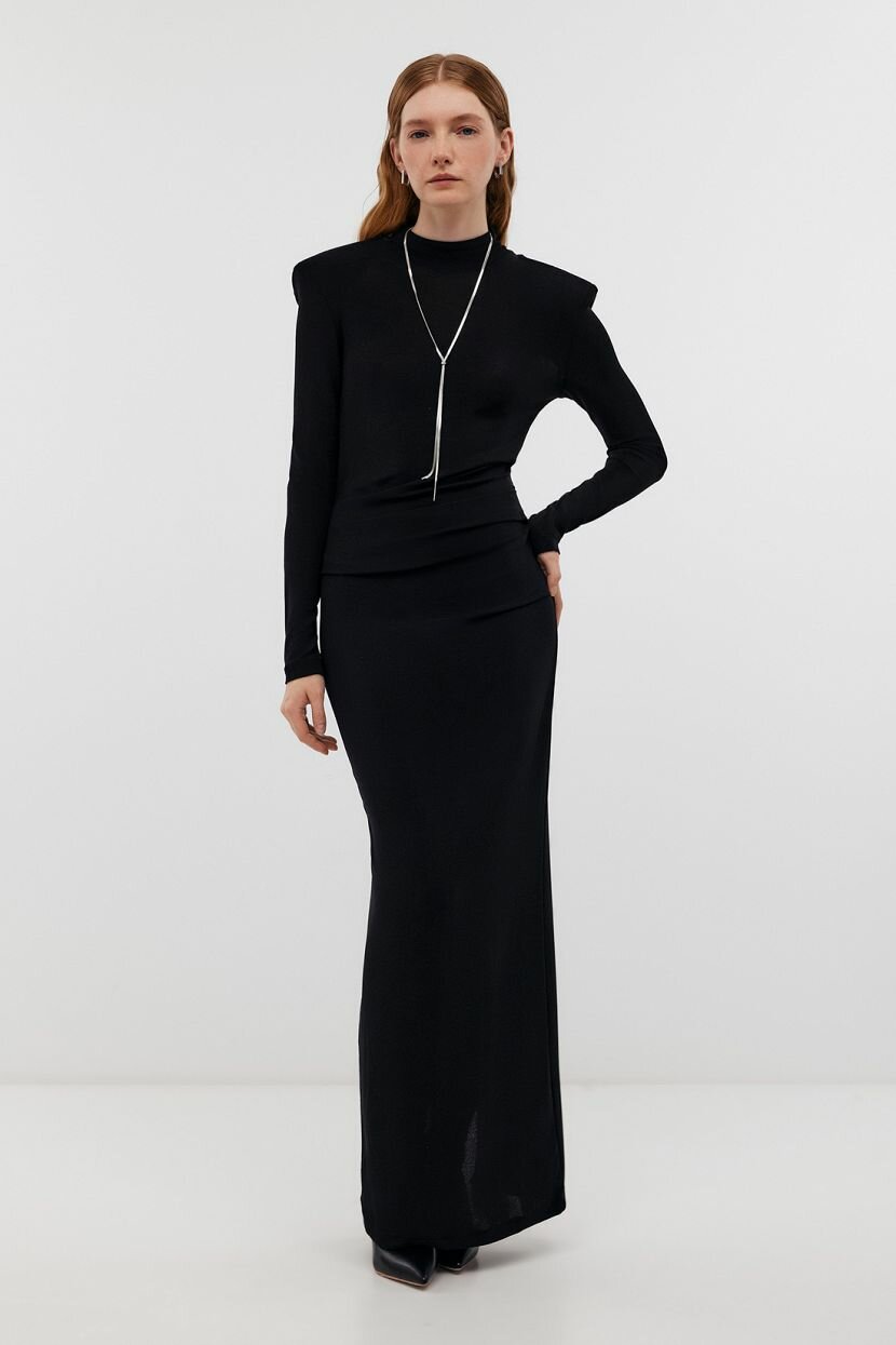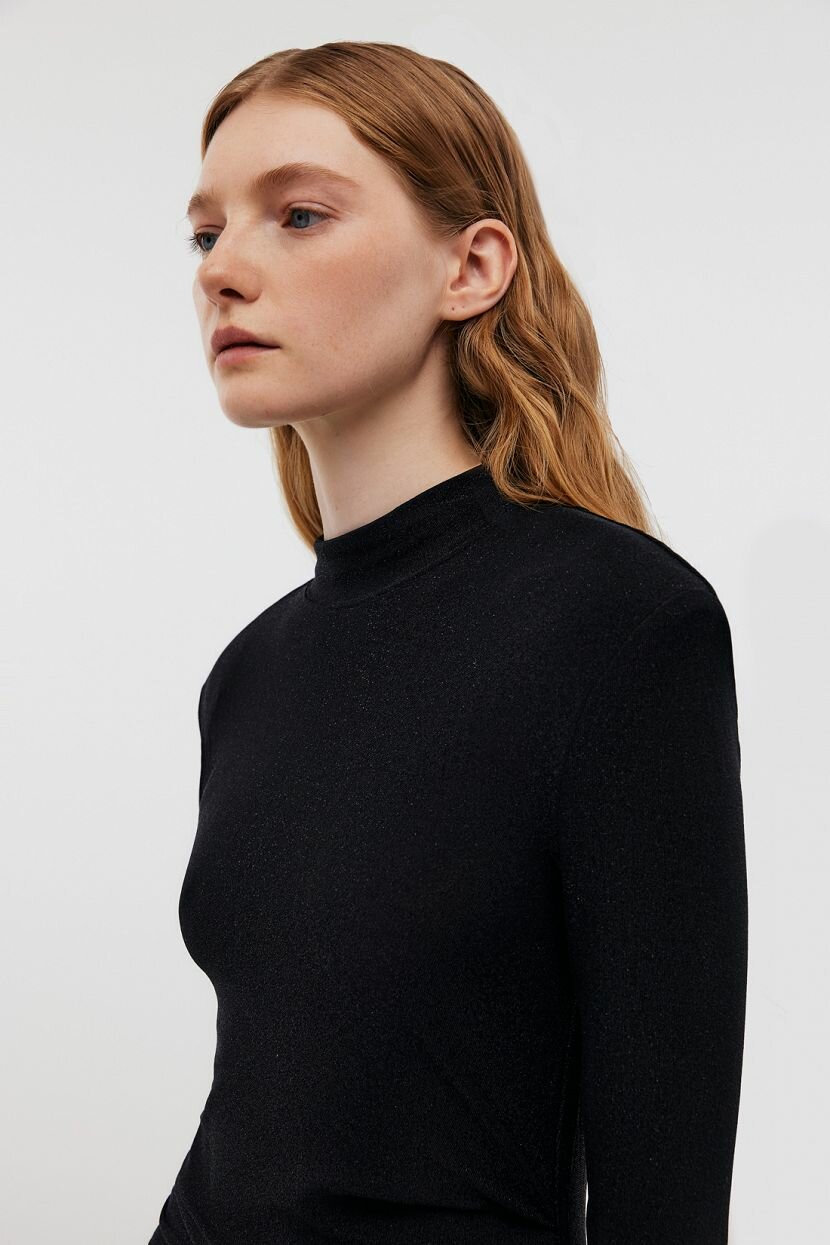 Классическое трикотажное платье макси получило новое звучание благодаря блестящей металлизированной нити. Дизайн обретает особый стиль и индивидуальность. Органично смотрится самостоятельно и в составе стильного многослойного комплекта для офиса и на каждый день. Приталенный силуэт и сборка по талии придает женственность и плавность. Оно имеет высокий воротник и длинный рукав для эффективного сохранения тепла. К деталям относятся потайная застежка на молнию по шву, расположенному в спинке. Выполнено из полушерстяного джерси. Вязка трикотажа наделяет изделие эластичностью и мягкостью. Оно обеспечивает тактильный комфорт и отлично тянется. Малая сминаемость и простота ухода сделают платье практичным повседневным решением.