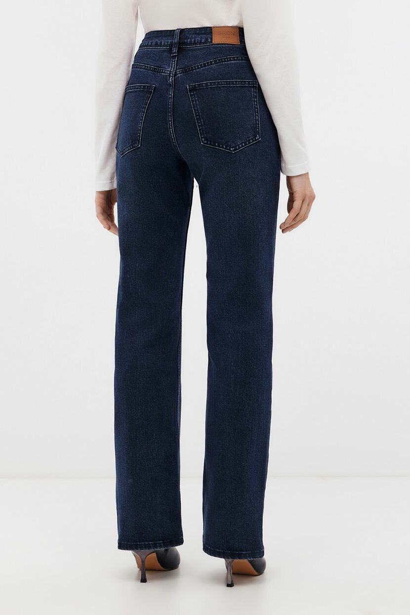 Джинсы посадки wide leg сшиты из хлопкового денима с добавлением эластана. Хлопок обеспечит непревзойденный комфорт в носке, гигроскопичность, натуральность и экологичность. Эластан добавит удобства движения, минимизирует деформацию. Средняя по высоте посадка создаст гармоничный силуэт. Темно-синий окрас без потертостей позволит интегрировать эти брюки в том числе и в аутфиты в стиле smart-casual. Фирменная фурнитура придаст изделию завершенный вид.Тщательно продуманный прямой крой обеспечивает свободу движений и подходящий для повседневной носки внешний вид. Материал джинсов сочетает долгий срок службы и приятные тактильные, благодаря качественному подбору тканевых компонентов.Такие штаны станут отличным дополнением вашего гардероба за счёт их универсальности и практичности. Они легко сочетаются с разнообразными стилями одежды, начиная от классического и заканчивая современным повседневным образом.