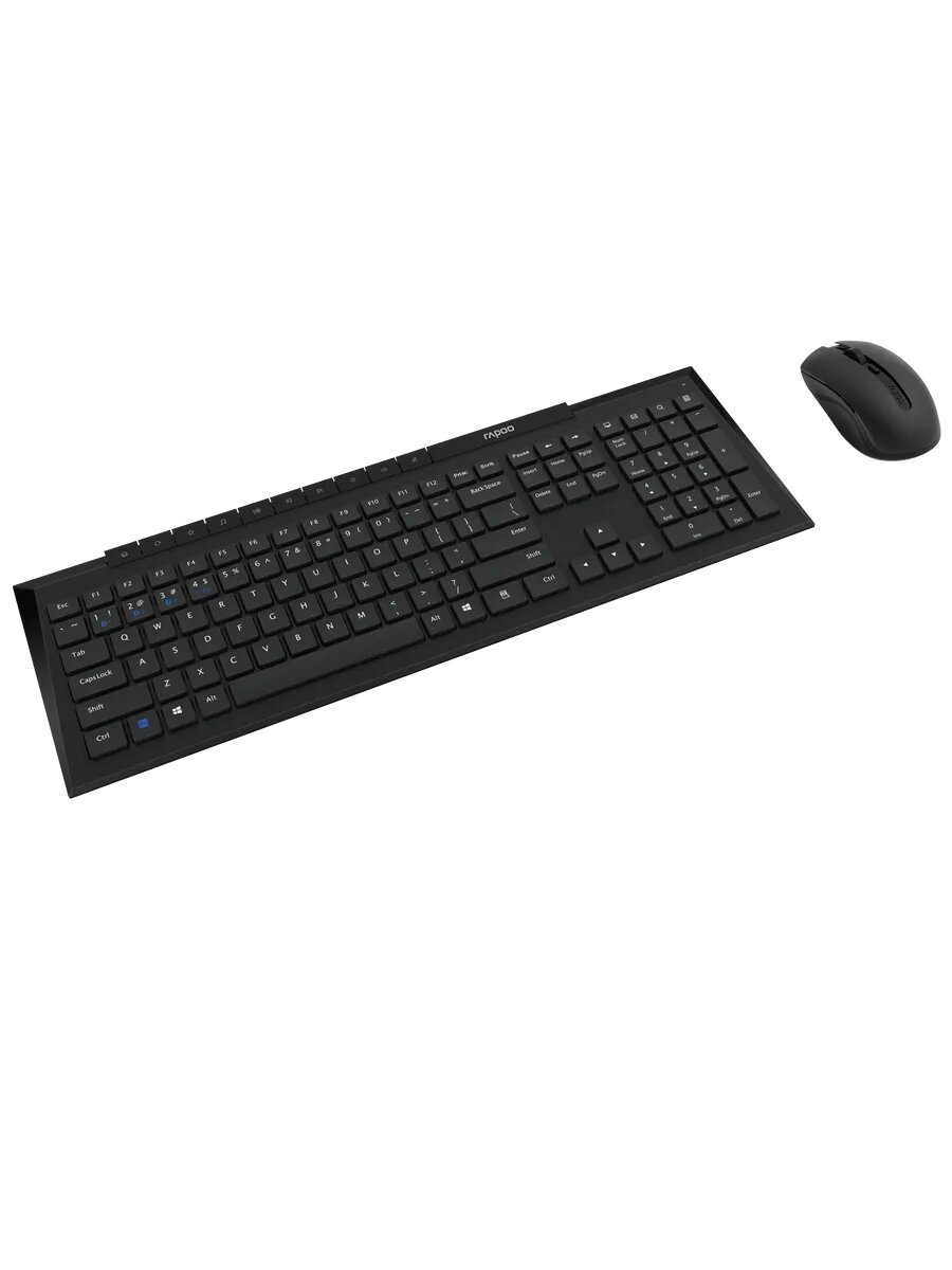 Комплект беспроводной клавиатуры и мыши Rapoo 8210M — это интересный, практичный и функциональный аксессуар для продуктивной и эффективной работы за компьютером и для развлечений. Раскладка клавиатуры — английская/русская. К услугам пользователя выделенный блок цифровых клавиш, функциональные клавиши для быстрого доступа к приложениям и командам. К компьютеру клавиатура и мышь подключаются через Bluetooth, цвет комплекта — черный/black. Стильный дизайн, симпатичный внешний вид делают этот девайс уместным на любом столе. Среди положительных черт Rapoo 8210M, безусловно, заслуживают отдельного упоминания разумная эргономика, удобство при транспортировке, отличное соотношение цены и качества. Источник питания — 2хAA.