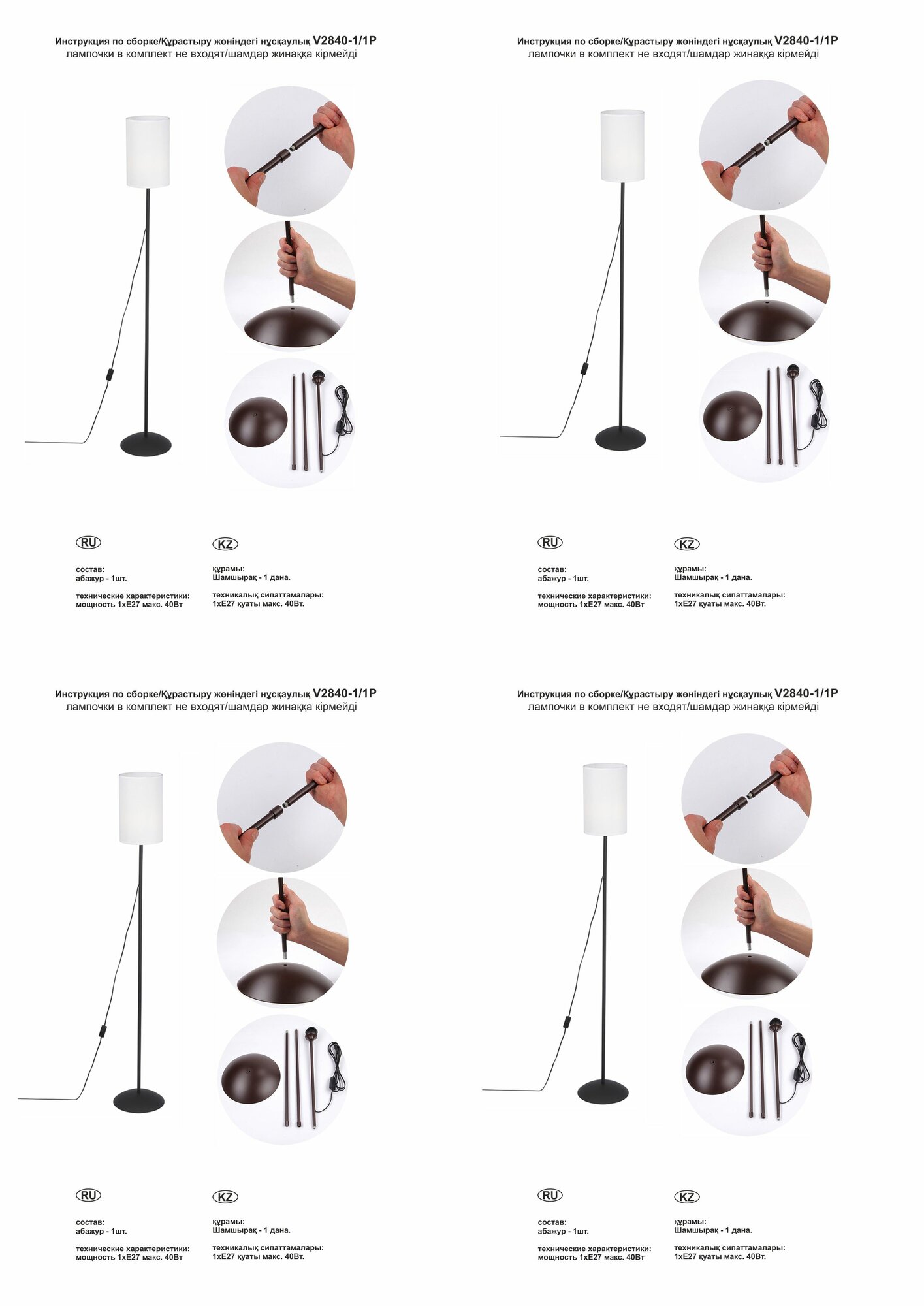 | Мощность лампы, W | 40 |