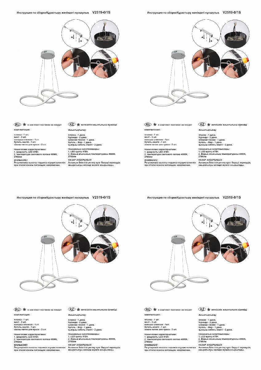 светодиодная люстра vitaluce , мощность 47 вт, световой поток 2700 лм, температура света 4000 к, напряжение 220 в, гарантия 2 года.