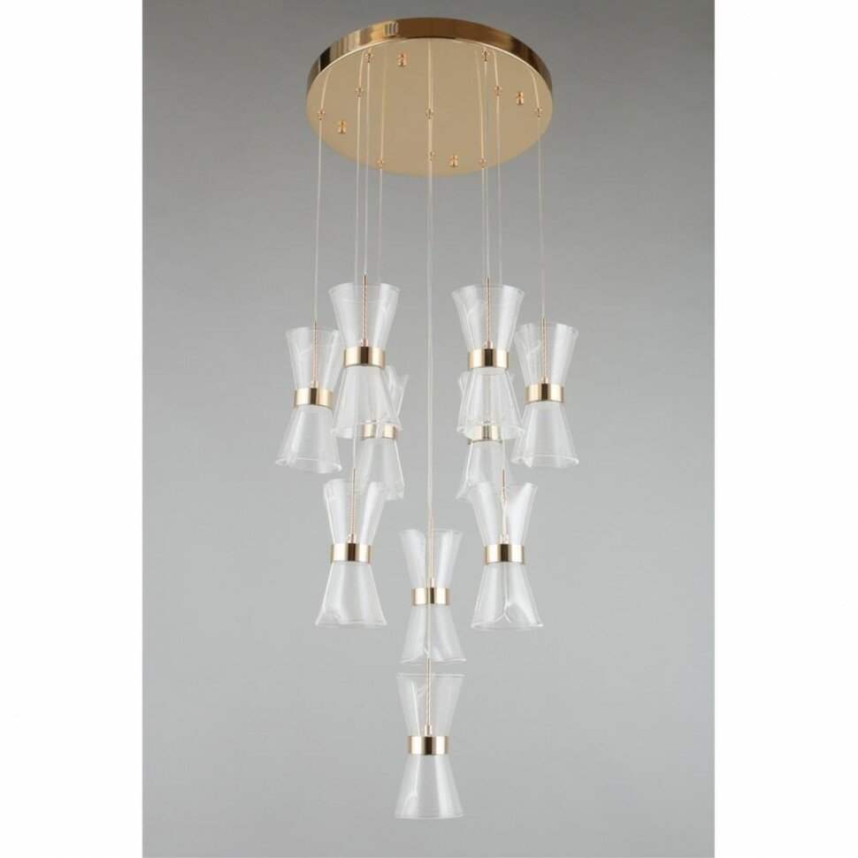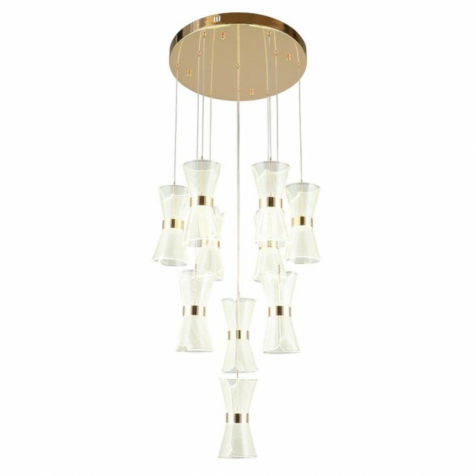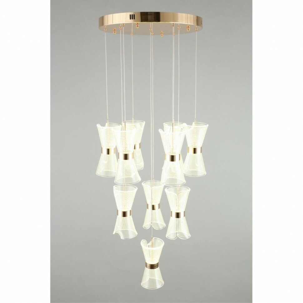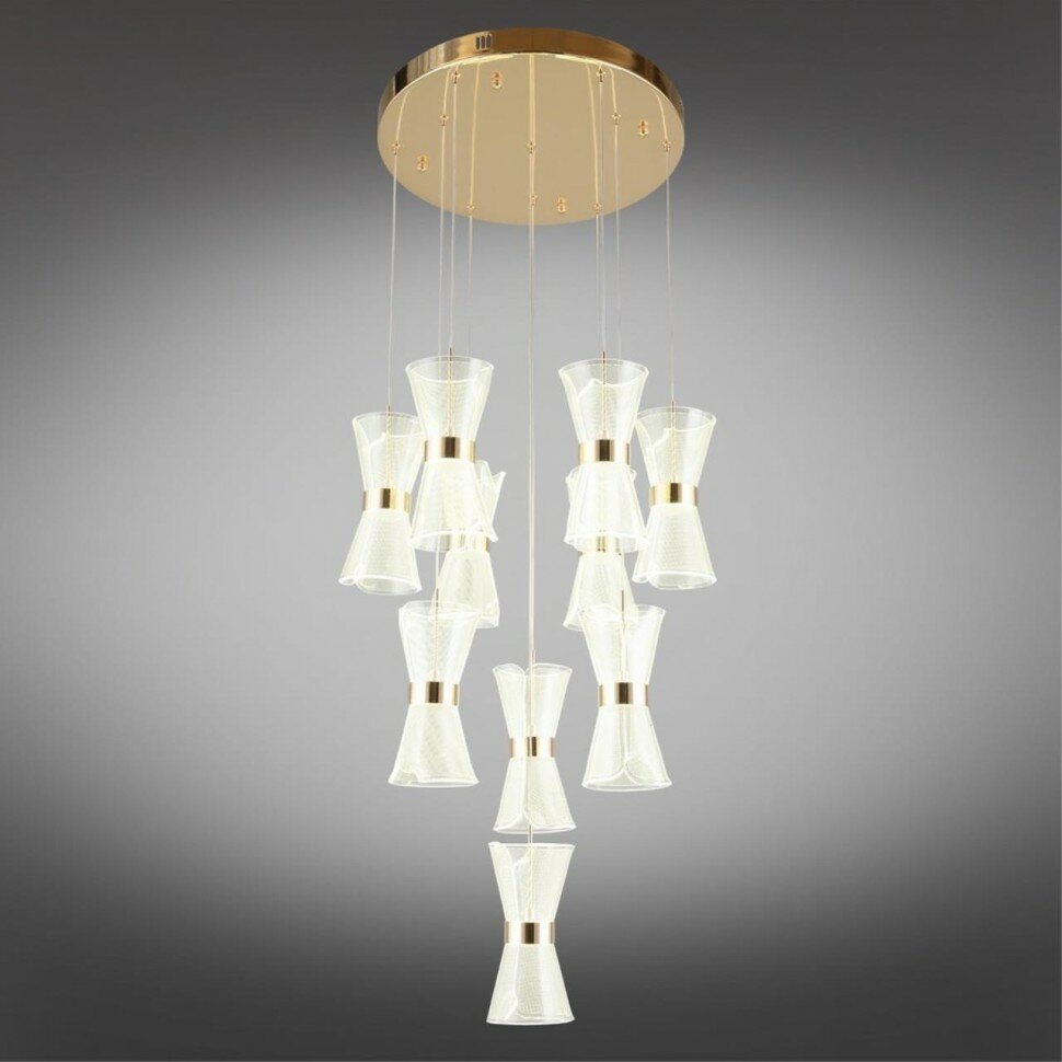 Стильная подвесная лампа с ажурным абажуром из металла. Лампа выполнена в золотом цвете, что придает ей роскошный вид. Она идеально подойдет для освещения кухни, гостиной или спальни.