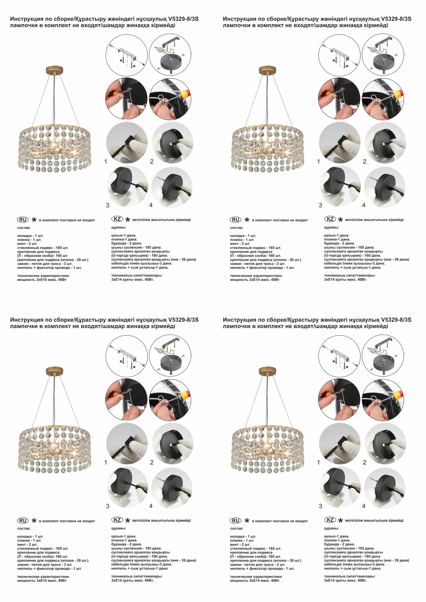 | Лампы в комплекте | Нет |