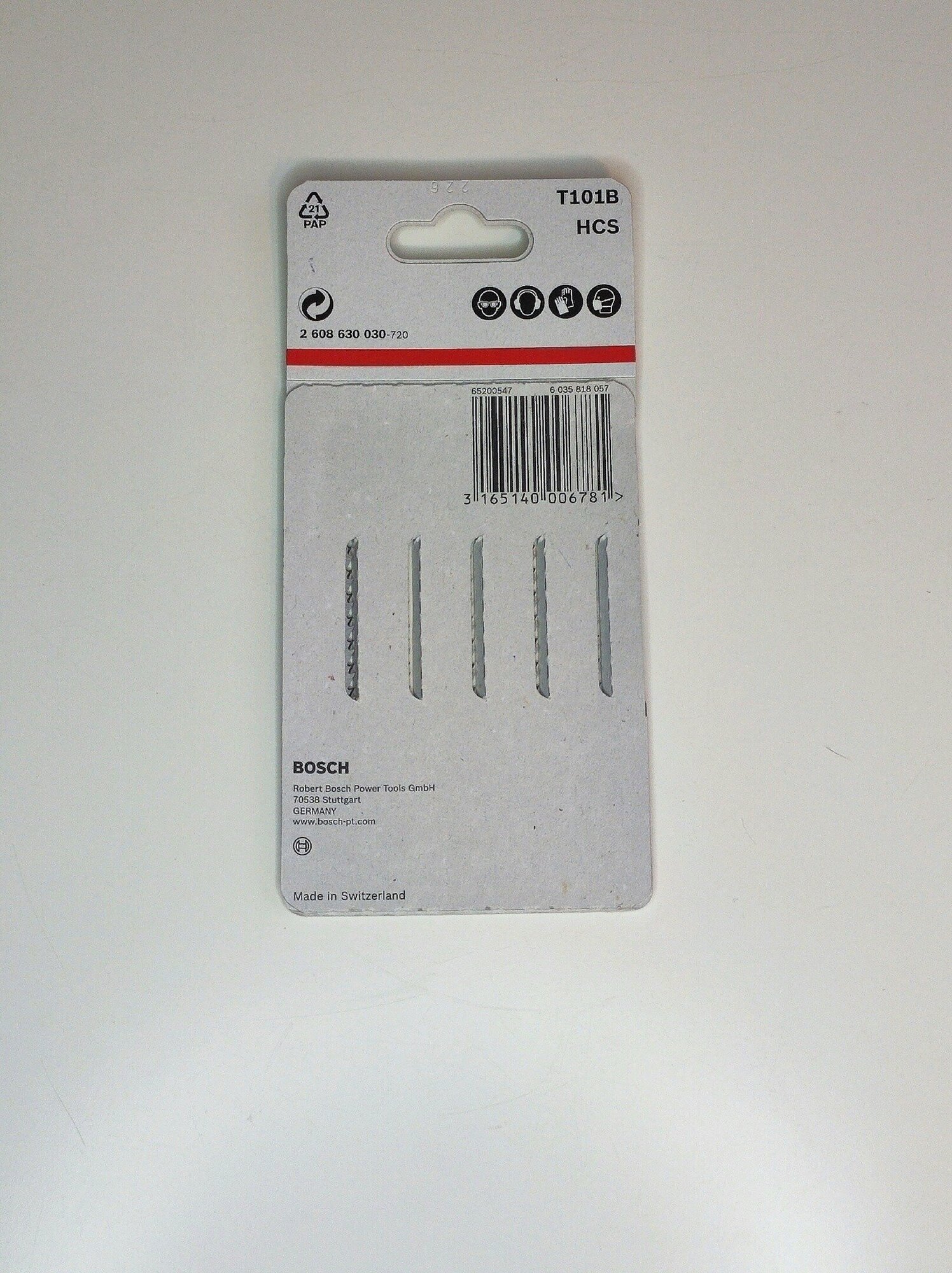 Полотна для бошевского лобзика подбирал после тест-драйва у крестного в мастерской, очень понравился набор 101-ao, преимущественно из-за качества материалов, потому что что в комплектации (нашел такой в Моуо на Стрыйской) идут три пилы. По качеству они добротные, не могу утверждать, что не портятся десятилетиям - тупятся по времени так же, как и другие полотна для лобзика, зато легко и быстро крепятся к устройству, не люфтят, не выпадают и очень острые - режут как масло, извините за банальность. Трех полотен хватает на долго - металл крепкий и зубцы очень острые. Работаю с фанерой и древесиной - все устраивает. Еще полотна удобно хранить прямо в заводской упаковке в вертикальном положении