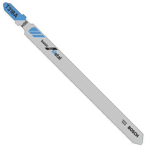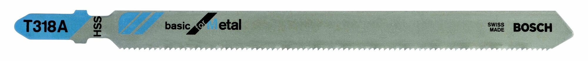 Пилки для лобзика Bosch T 318 А HSS 2608631319 - набор, состоящий из 5 пилок по металлу. Делают тонкий и деликатный распил в таких поверхностях как: тонкие металлические листы, профили и трубы из алюминия.