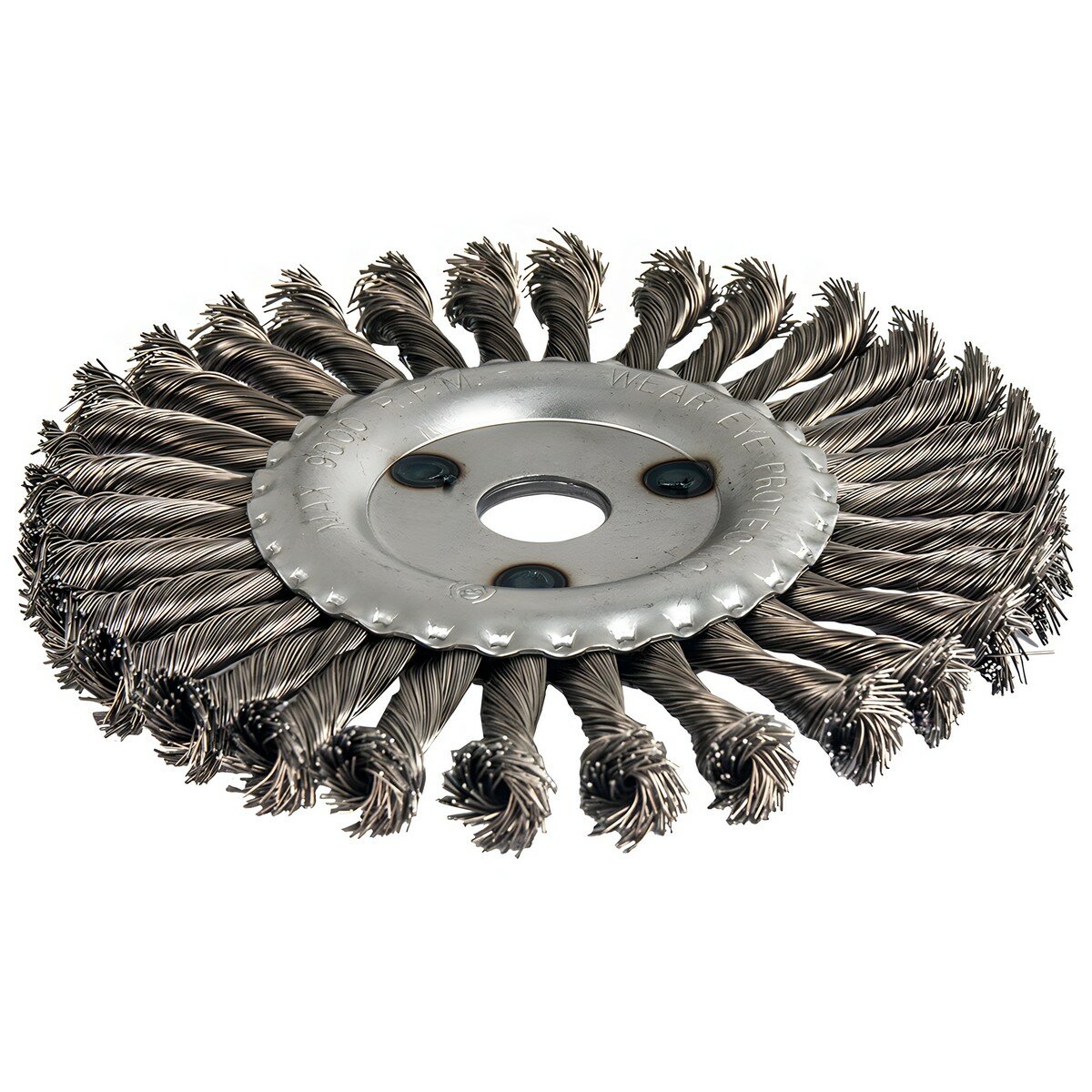 Кордщетки радиальные витые. Серия "Мастер". Кордщетка для угловых шлифмашин. Крепление планшайбой шлифмашины. Витая стальная проволока. Для грубой обработки деревянных и металлических поверхностей в труднодоступных местах, снятия краски, ржавчины, обработки сварных швов.