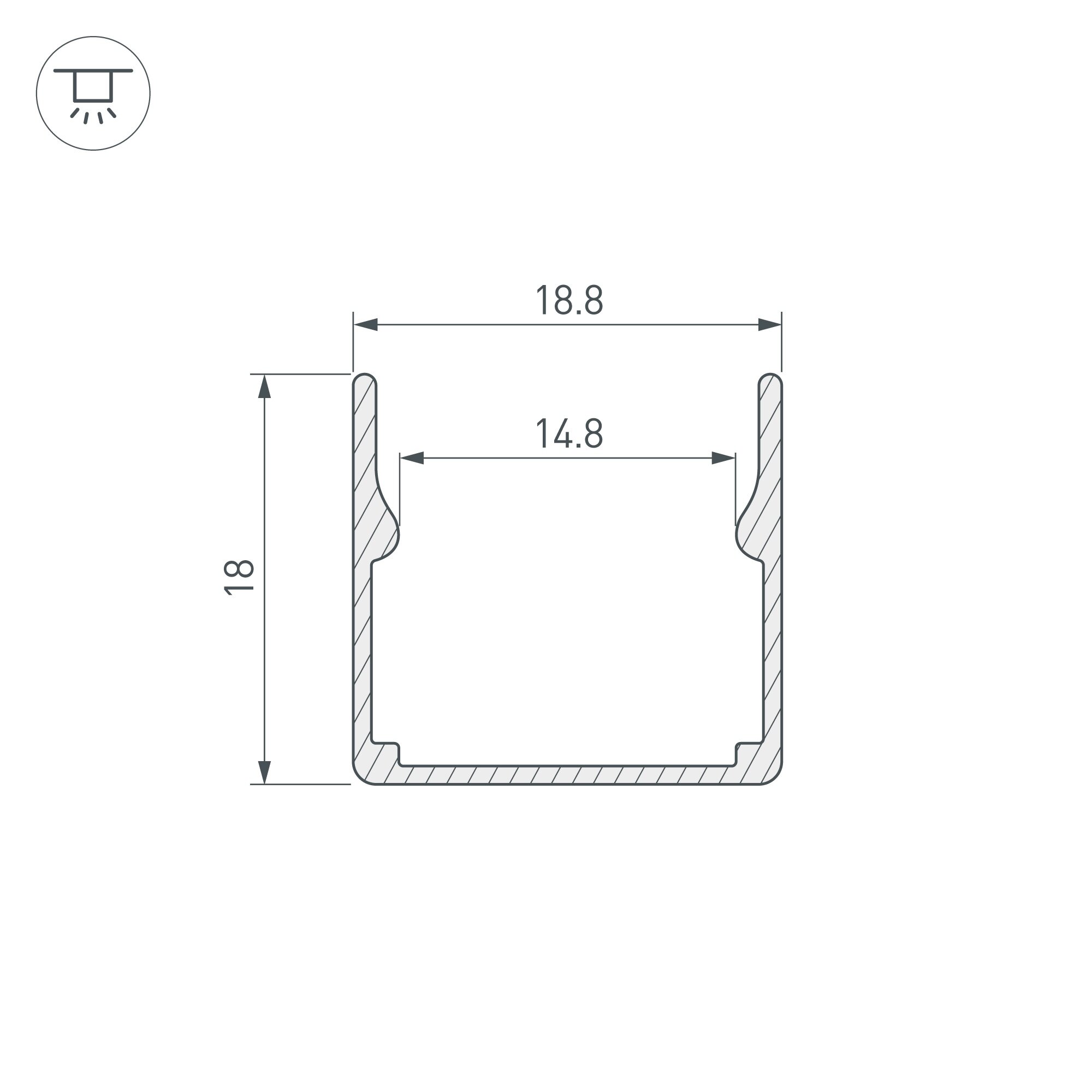 Профиль из анодированного алюминия для силиконового профиля WPH-FLEX-1616. Габаритные размеры (L×W×H): 1000х18,8х18 мм. Цена за 1 метр.