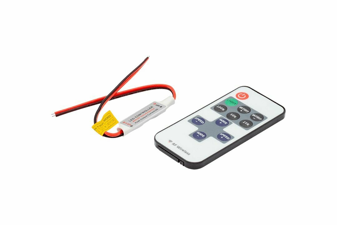 Предназначен для управления светодиодными лентами и модулями. Имеет компактные габариты и позволяет при помощи пульта настроить яркость свечения или выбрать один из предложенных динамических режимов мигания.
