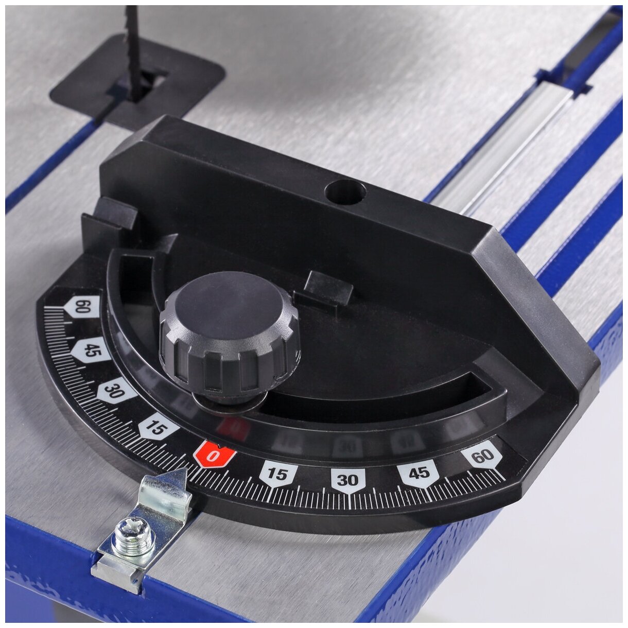 Станок предназначен для обработки древесины и прочих древесных материалов пилением с целью придания им необходимых форм и размеров, с ручной подачей заготовки. На нем можно выполнять: пакетное резание, резание по кривой, разрезание на заготовки заданной длины, продольное и поперечное резание, резание под углом.Преимущества Рабочий стол изготовлен из алюминия (313×306 мм), имеет возможность наклона от 0 до 45 градусов В столе есть паз для установки углового упора, обеспечивающий угол от -60 до +60 градусов На задней части корпуса для подключения вытяжной установки выведен пластиковый патрубок диаметром 63 мм В основании станка находится опора, которая придает дополнительную устойчивость. При необходимости и для дополнительной безопасности основание можно прикрепить к верстаку, для этого есть четыре отверстия