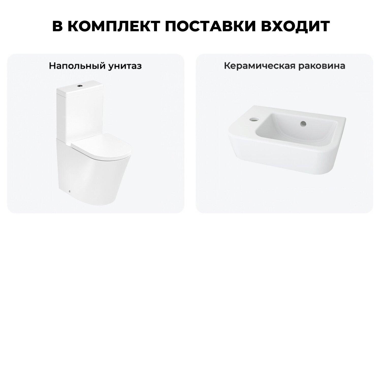Комплексное предложение по специальной цене, включающее все необходимое для обустройства санузла / ванной комнаты.НАПОЛЬНЫЙ УНИТАЗ LAVINIA BOHOСанитарный фарфор Lavinia Boho имеет более твердую и гладкую поверхность, нежели сантехнический фаянс. Система антивсплеск увеличивает гигиеничность использования изделия и делает уборку более быстрой и простой. Антибактериальное покрытие препятствует скоплению грязи и сокращает рост бактерий.Швейцарское качество сливной арматуры Geberit гарантирует бесперебойную работу унитаза в течение как минимум 10 лет (более 200.000 циклов смыва). Латунный наполняющий и сливной клапаны производятся с помощью автоматизированного проектирования и соответствуют самым строгим требованиям надежности, предъявляемыми французским знаком NF.КЕРАМИЧЕСКАЯ РАКОВИНАКомпактная подвесная раковина Lavinia Boho One (370 х 245 х 100) оптимально подходит для небольших ванных комнат или гостевых санузлов. Конструкция чаши умывальника и расположение смесителя позволяют максимально избежать брызг воды при использовании изделия. Сливное отверстие раковины и точно выверенный угол уклона, обеспечивают слив до 30 литров воды в минуту, что позволяет использовать умывальник без ограничений мощности потока и опасения перелива воды.ГОТОВОЕ РЕШЕНИЕ ДЛЯ ТУАЛЕТНОЙ КОМНАТЫДизайнерская сантехника изготовлена в едином стиле: изделия прекрасно дополняют друг друга и формируют органичный тандем с латунными сифонами, донными клапанами, выпусками, угловыми вентилями и элегантными аксессуарами.Гарантируем 100% качество и целостность изделий, наличие всех необходимых документов на покупку!Комплектация: безободковая чаша напольного унитаза c декоративными колпачками для креплений Lavinia Boho Biore Rimless 3304203R; бачок унитаза с 2-х режимной сливной арматурой Lavinia Boho Biore 33043040 (Geberit, Швейцария); быстросъемное сиденье микролифт из прочного дюропласта с хромированными металлическими петлями Lavinia Boho Biore 33290410; керамическая раковина с декоративным кольцом на перелив Lavinia Boho One 33310001L (размер 37*24,5 см, отверстие под смеситель слева); комплект креплений; инструкция по монтажу и эксплуатации; гарантийный талон.Внимание! Пожалуйста, посмотрите все изображения к товару и найдите фото, помогающее правильно определить угол поворота. Данная модель с левым L-разворотом. Пожалуйста, убедитесь в правильности выбора нужной стороны.