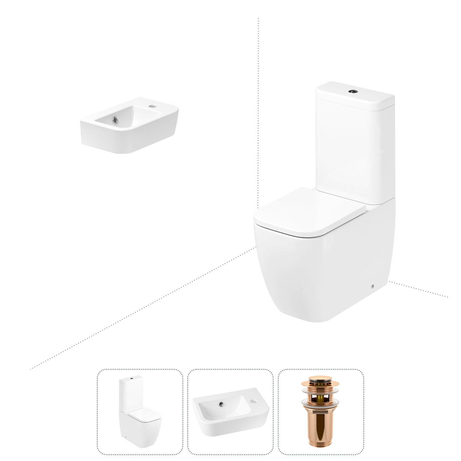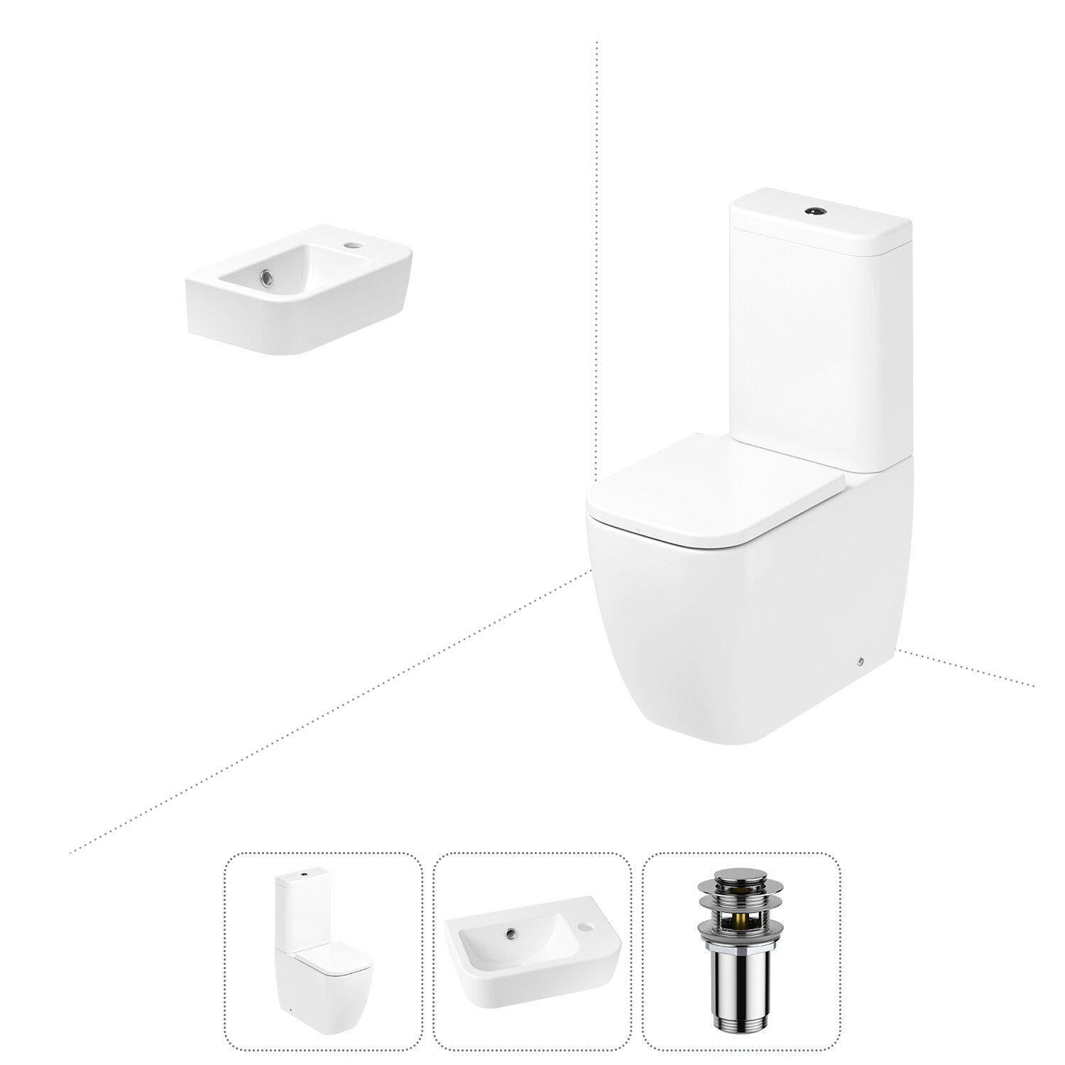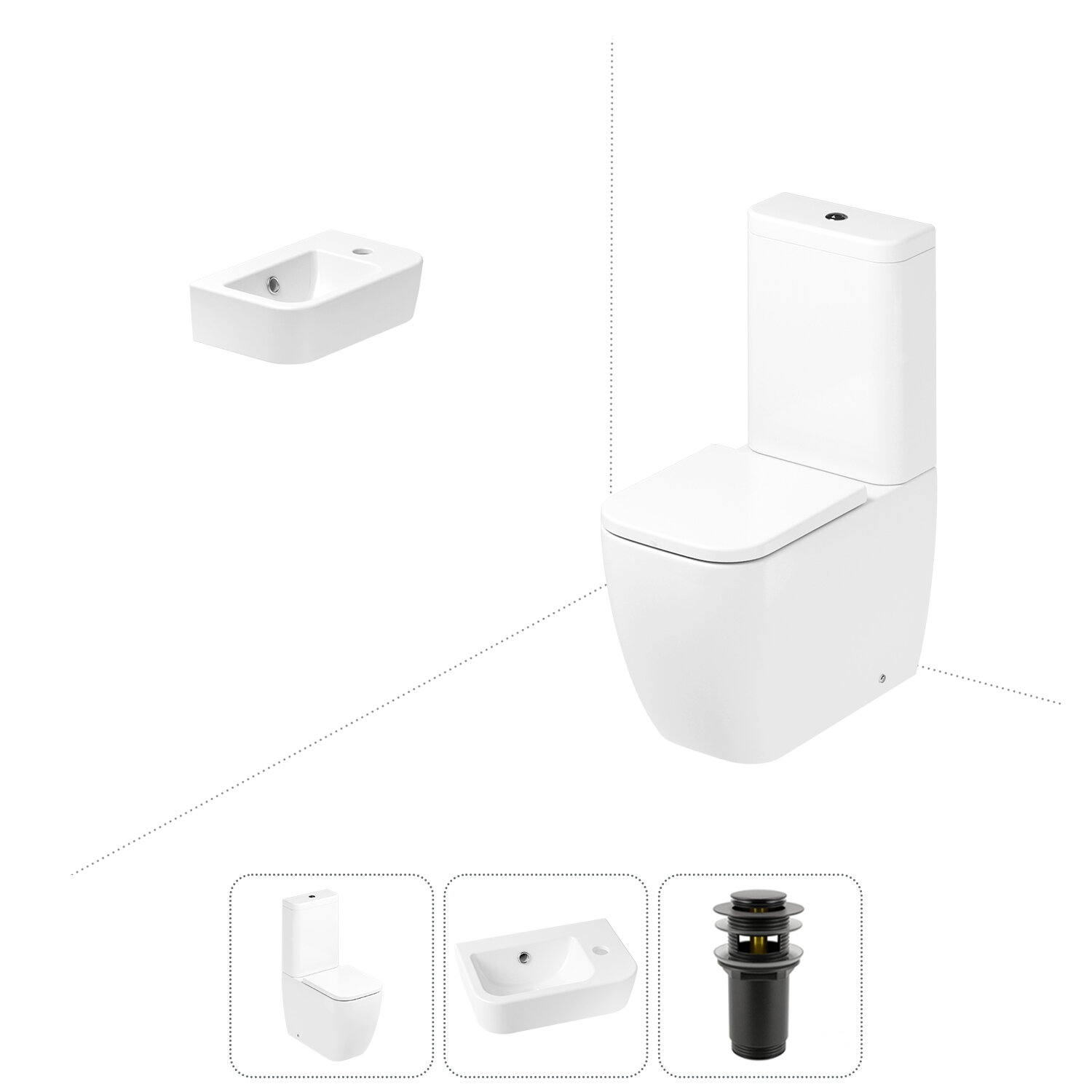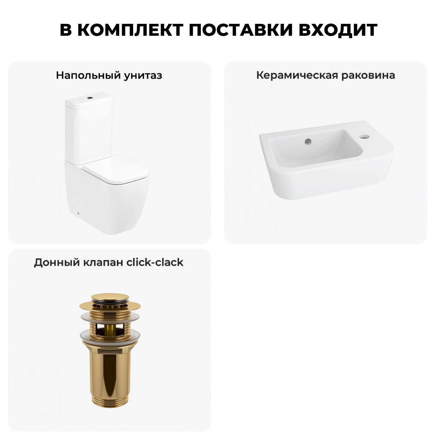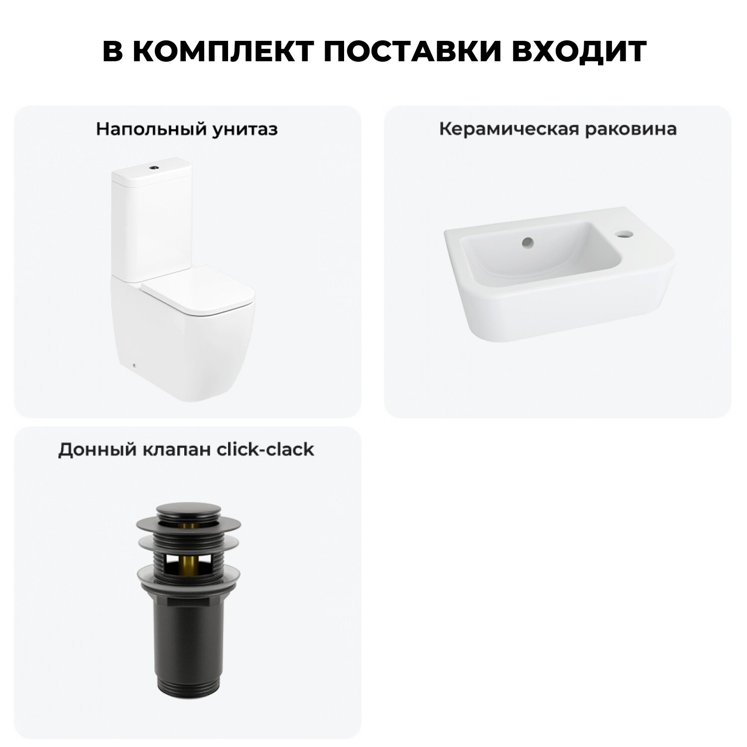 Комплексное предложение по специальной цене, включающее все необходимое для обустройства санузла / ванной комнаты.НАПОЛЬНЫЙ УНИТАЗ LAVINIA BOHOСанитарный фарфор Lavinia Boho имеет более твердую и гладкую поверхность, нежели сантехнический фаянс. Система антивсплеск увеличивает гигиеничность использования изделия и делает уборку более быстрой и простой. Антибактериальное покрытие препятствует скоплению грязи и сокращает рост бактерий.Швейцарское качество сливной арматуры Geberit гарантирует бесперебойную работу унитаза в течение как минимум 10 лет (более 200.000 циклов смыва). Латунный наполняющий и сливной клапаны производятся с помощью автоматизированного проектирования и соответствуют самым строгим требованиям надежности.КЕРАМИЧЕСКАЯ РАКОВИНАКомпактная подвесная раковина Lavinia Boho One (370 х 245 х 100) оптимально подходит для небольших ванных комнат или гостевых санузлов. Конструкция чаши умывальника и расположение смесителя позволяют максимально избежать брызг воды при использовании изделия. Сливное отверстие раковины и точно выверенный угол уклона, обеспечивают слив до 30 литров воды в минуту, что позволяет использовать умывальник без ограничений мощности потока и опасения перелива воды.ГОТОВОЕ РЕШЕНИЕ ДЛЯ ТУАЛЕТНОЙ КОМНАТЫДизайнерская сантехника изготовлена в едином стиле: изделия прекрасно дополняют друг друга и формируют органичный тандем с латунными сифонами, донными клапанами, выпусками, угловыми вентилями и элегантными аксессуарами.Комплектация: чаша напольного унитаза c декоративными колпачками для креплений Lavinia Boho One 33022040; бачок унитаза с 2-х режимной сливной арматурой Lavinia Boho One 33023050 (Geberit, Швейцария); быстросъемное сиденье микролифт из прочного дюропласта с хромированными металлическими петлями Lavinia Boho One 33290200; керамическая раковина с декоративным кольцом на перелив Lavinia Boho One 33310001R (размер 37*24,5 см, отверстие под смеситель справа); донный клапан для раковины Wellsee Drainage System 182130000 (цвет матовый черный); комплект креплений; инструкция по монтажу и эксплуатации; гарантийный талон.Внимание! Пожалуйста, посмотрите все изображения к товару и найдите фото, помогающее правильно определить угол поворота. Данная модель с правым R-разворотом. Пожалуйста, убедитесь в правильности выбора нужной стороны.