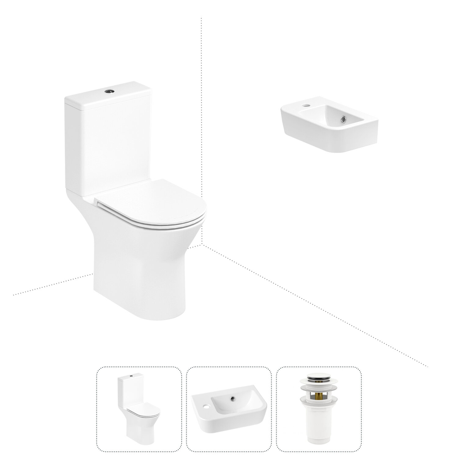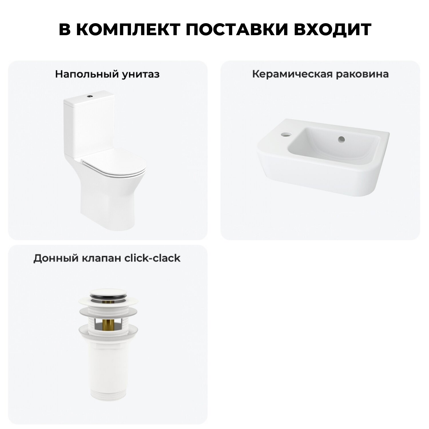 Комплексное предложение по специальной цене, включающее все необходимое для обустройства санузла / ванной комнаты.НАПОЛЬНЫЙ УНИТАЗ LAVINIA BOHOСанитарный фарфор Lavinia Boho имеет более твердую и гладкую поверхность, нежели сантехнический фаянс. Система антивсплеск увеличивает гигиеничность использования изделия и делает уборку более быстрой и простой. Антибактериальное покрытие препятствует скоплению грязи и сокращает рост бактерий.Швейцарское качество сливной арматуры Geberit гарантирует бесперебойную работу унитаза в течение как минимум 10 лет (более 200.000 циклов смыва). Латунный наполняющий и сливной клапаны производятся с помощью автоматизированного проектирования и соответствуют самым строгим требованиям надежности.КЕРАМИЧЕСКАЯ РАКОВИНАКомпактная подвесная раковина Lavinia Boho One (370 х 245 х 100) оптимально подходит для небольших ванных комнат или гостевых санузлов. Конструкция чаши умывальника и расположение смесителя позволяют максимально избежать брызг воды при использовании изделия. Сливное отверстие раковины и точно выверенный угол уклона, обеспечивают слив до 30 литров воды в минуту, что позволяет использовать умывальник без ограничений мощности потока и опасения перелива воды.ГОТОВОЕ РЕШЕНИЕ ДЛЯ ТУАЛЕТНОЙ КОМНАТЫДизайнерская сантехника изготовлена в едином стиле: изделия прекрасно дополняют друг друга и формируют органичный тандем с латунными сифонами, донными клапанами, выпусками, угловыми вентилями и элегантными аксессуарами.Комплектация: безободковая чаша напольного унитаза c декоративными колпачками для креплений Lavinia Boho Elegant Rimless 3308202R; бачок унитаза с 2-х режимной сливной арматурой Lavinia Boho Elegant 33083030 (Geberit, Швейцария); быстросъемное сиденье микролифт из прочного дюропласта с хромированными металлическими петлями Lavinia Boho Elegant 33290700; керамическая раковина с декоративным кольцом на перелив Lavinia Boho One 33310001L (размер 37*24,5 см, отверстие под смеситель слева); донный клапан для раковины Wellsee Drainage System 182133000 (цвет матовый белый); комплект креплений; инструкция по монтажу и эксплуатации; гарантийный талон.Внимание! Пожалуйста, посмотрите все изображения к товару и найдите фото, помогающее правильно определить угол поворота. Данная модель с левым L-разворотом. Пожалуйста, убедитесь в правильности выбора нужной стороны.