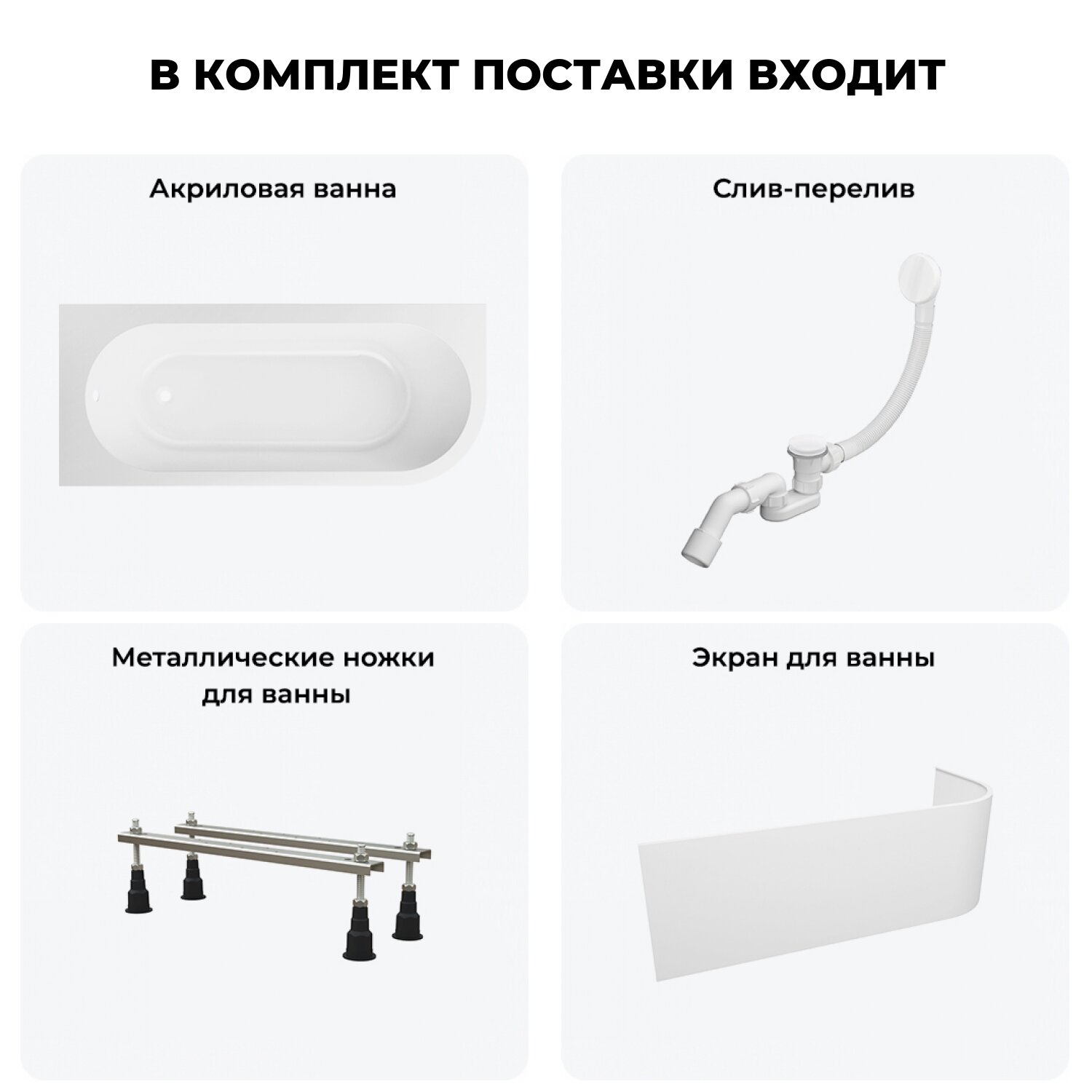 | Комплектация | ванна; инструкция; ножки; сифон |