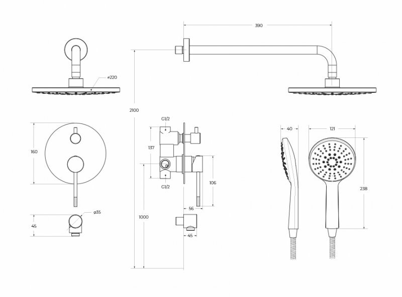 | Состав комплекта | верхний душ, настенный держатель, смеситель |