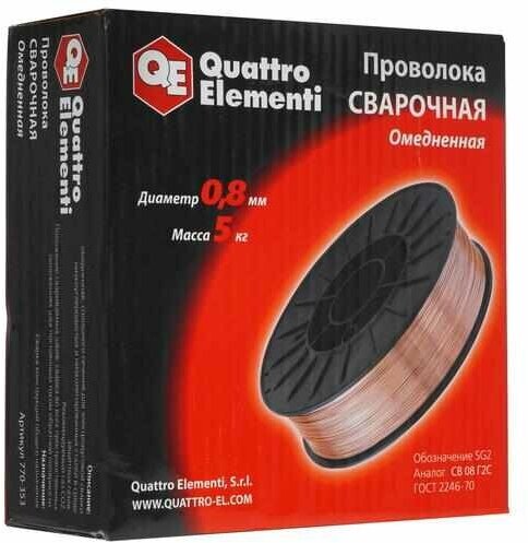 ОНЛАЙН ТРЕЙД.РУ — Проволока сварочная QUATTRO ELEMENTI омедненная, 0,8 мм, масса 5,0 кг