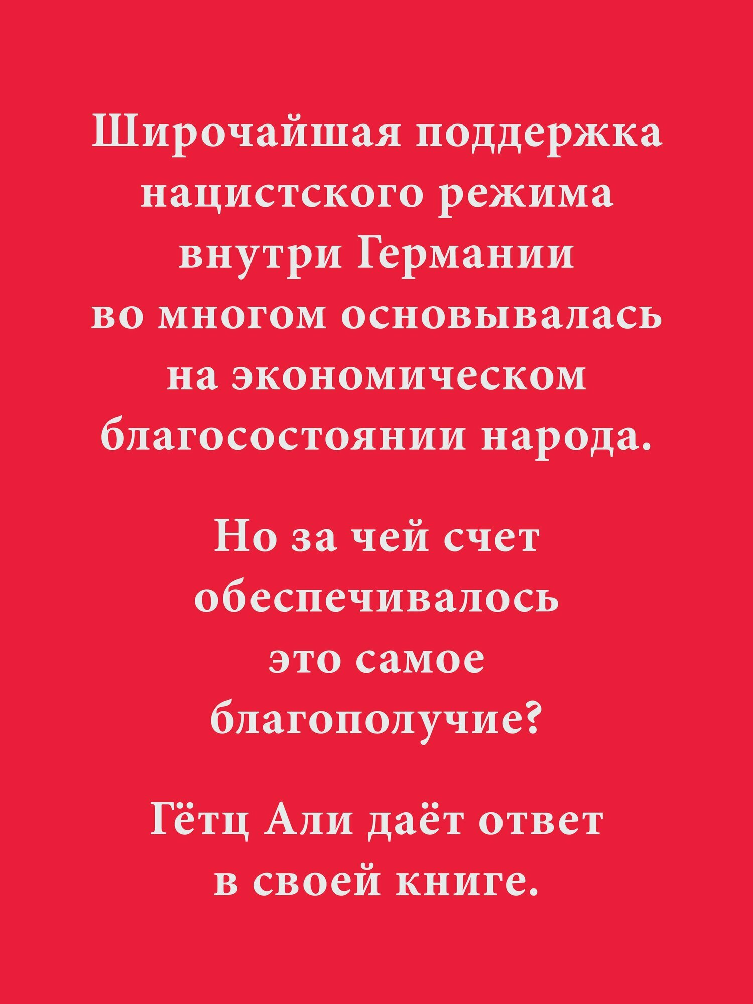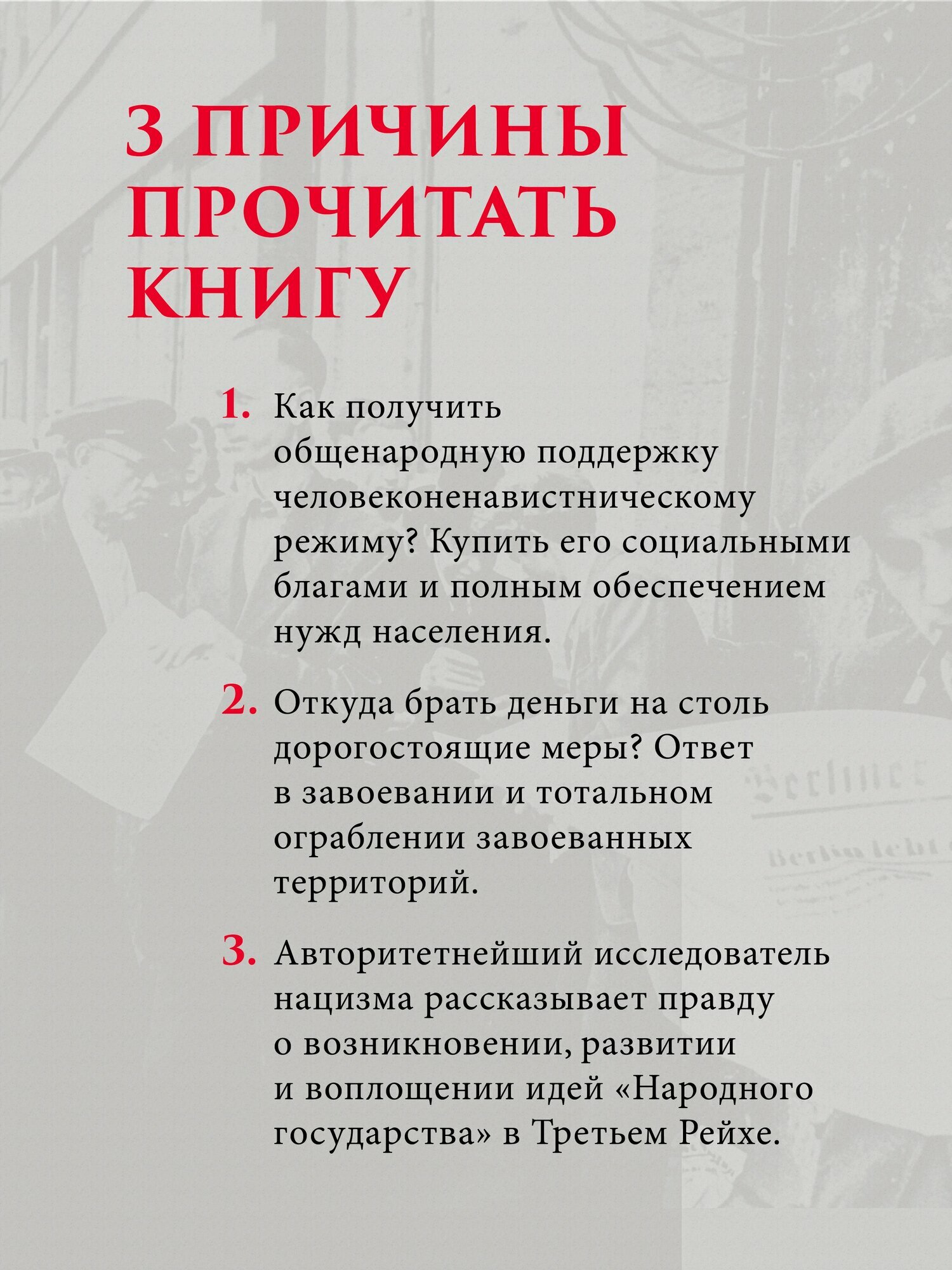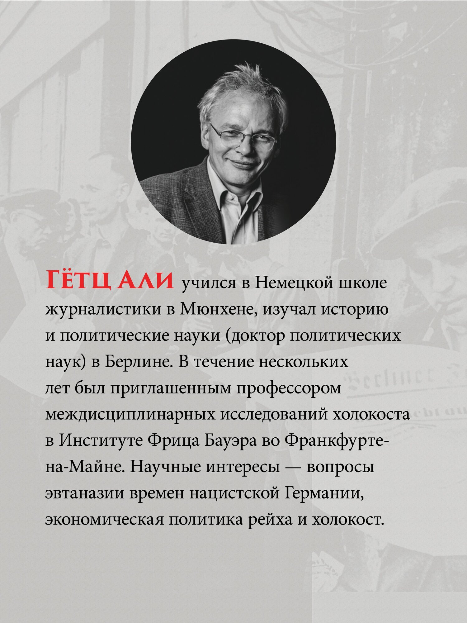 Али Гётц - один из самых авторитетных немецких исследователей нацизма. В данной книге он пишет о безудержном разграблении нацистами Европы, от которого выиграли миллионы простых немцев. Во время Второй мировой войны правительство Гитлера превратило государство в беспримерную машину грабежа и смогло обеспечить подавляющее большинство немцев социально-политическими и налоговыми льготами, а также хорошим снабжением. Цену за это благосостояние пришлось заплатить миллионам европейцев, чье имущество и средства к существованию были экспроприированы: доходы от продажи еврейского имущества по всей Европе поступали в военную казну Германии.После долгого замалчивания темы, наконец, безжалостно изображены выгоды, которые немецкое «народное сообщество» извлекало из преступлений нацизма, войны и убийств евреев.5 причин прочитать:Автор является одним из авторитетнейших исследователей нацизма.Узнать, на чем держалось народное государство Гитлера.Узнать, почему немецкий народ так легко принял нацистскую идеологию.Понять, как проходило ограбление Европы.Выяснить, что такое настоящая диктатура.