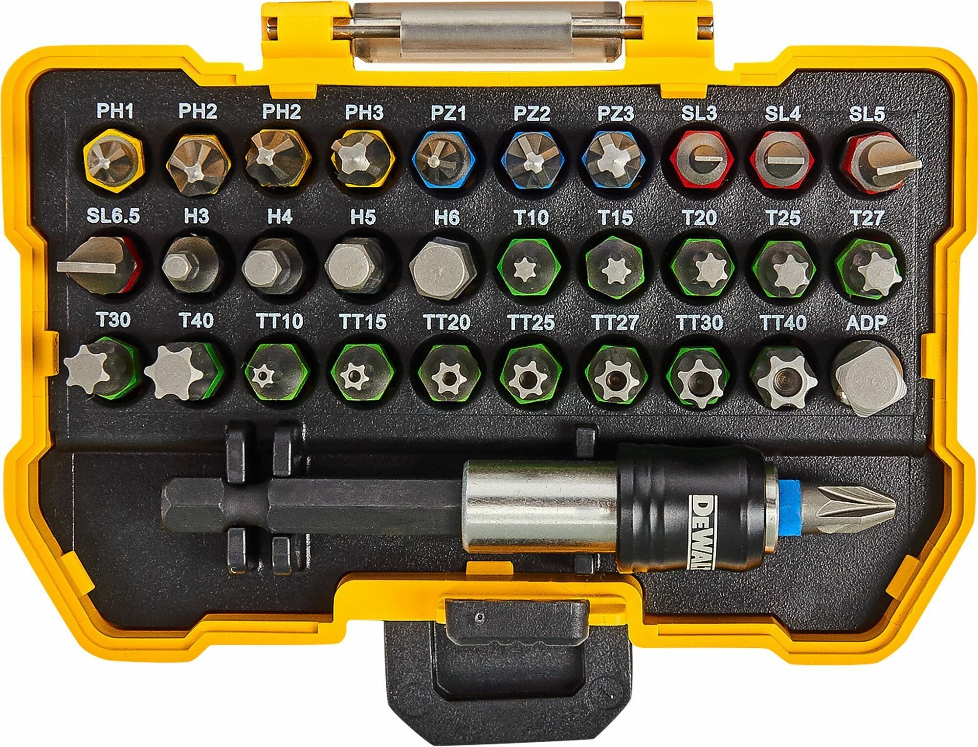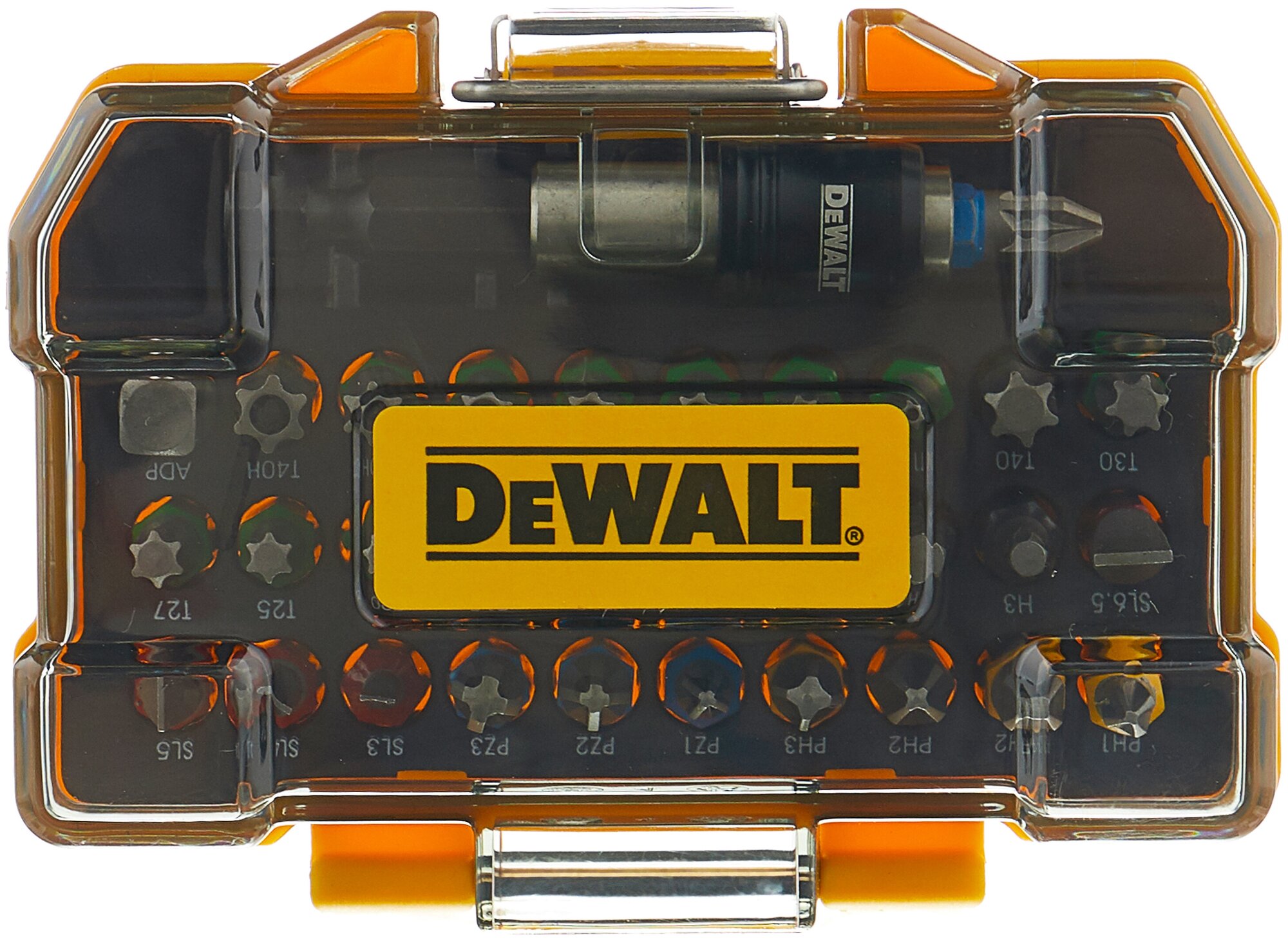 | DEWALT DT7969 набор бит в пластиковом боксе с прозрачной крышкой. Состоит из 32 предметов | битодержателя |