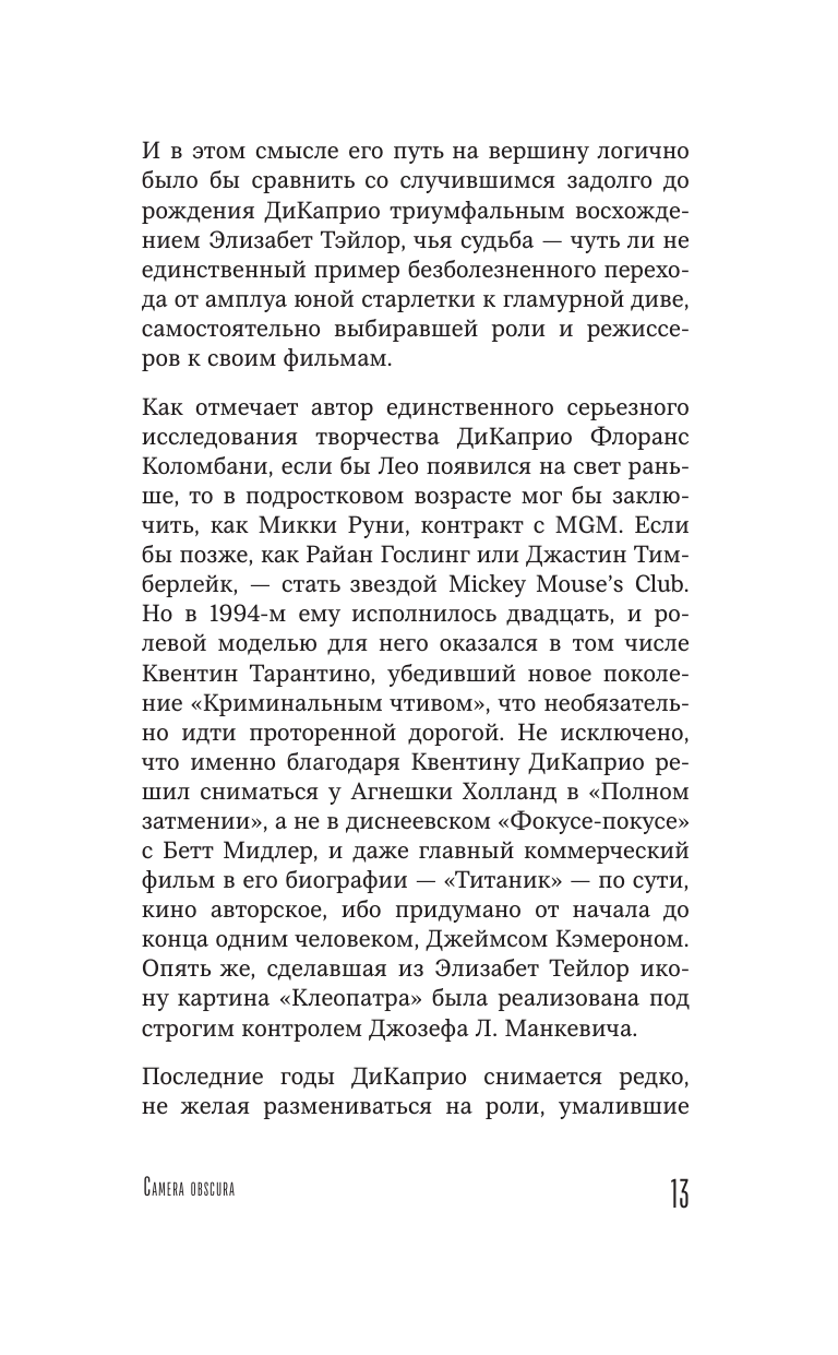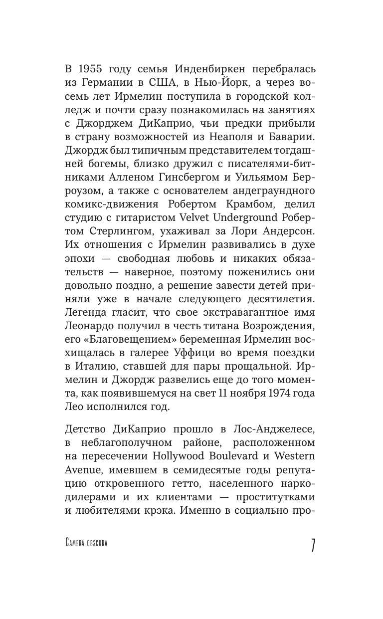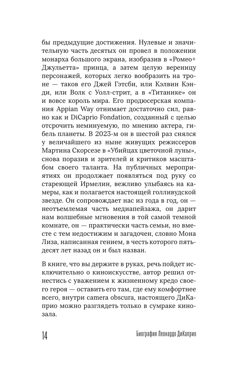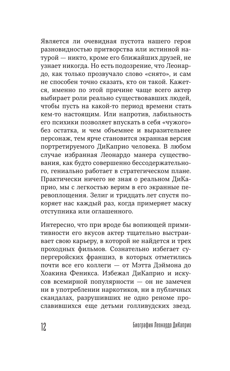 На страницах этой книги Зинаида Пронченко часто сравнивает своего героя с особами королевских кровей, пытаясь доказать утверждение, давно не нуждающееся ни в какой аргументации: нет большей звезды в современном кино, чем Леонардо ДиКаприо. Будут ли у него наследники — вот в чем вопрос? Потому что в отсутствие настоящих звезд человечество, так или иначе состоящее из зрителей, почувствует себя очень одиноко.
