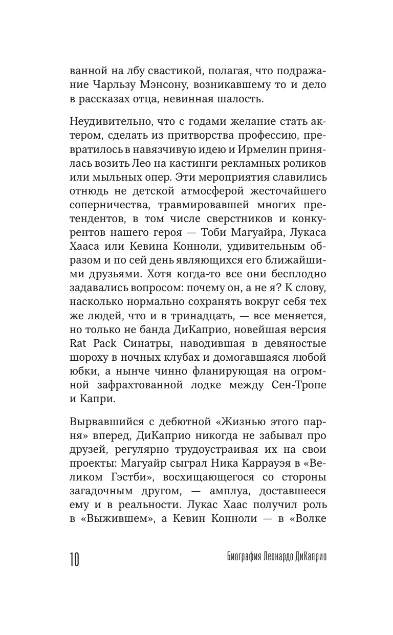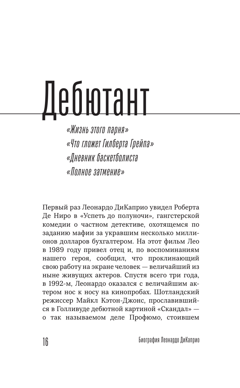 Лео тонул в «Титанике», выживал в «Выжившем», прыгал по снам в «Начале», блистал на Уолл-стрит и был Великим Гэтсби. Но еще ни разу все его герои не собирались вместе. Кинокритикесса Зинаида Пронченко собрала все грани Леонардо ДиКаприо воедино и написала его грандиозный портрет в своей книге «Главный герой. Биография Леонардо ДиКаприо».