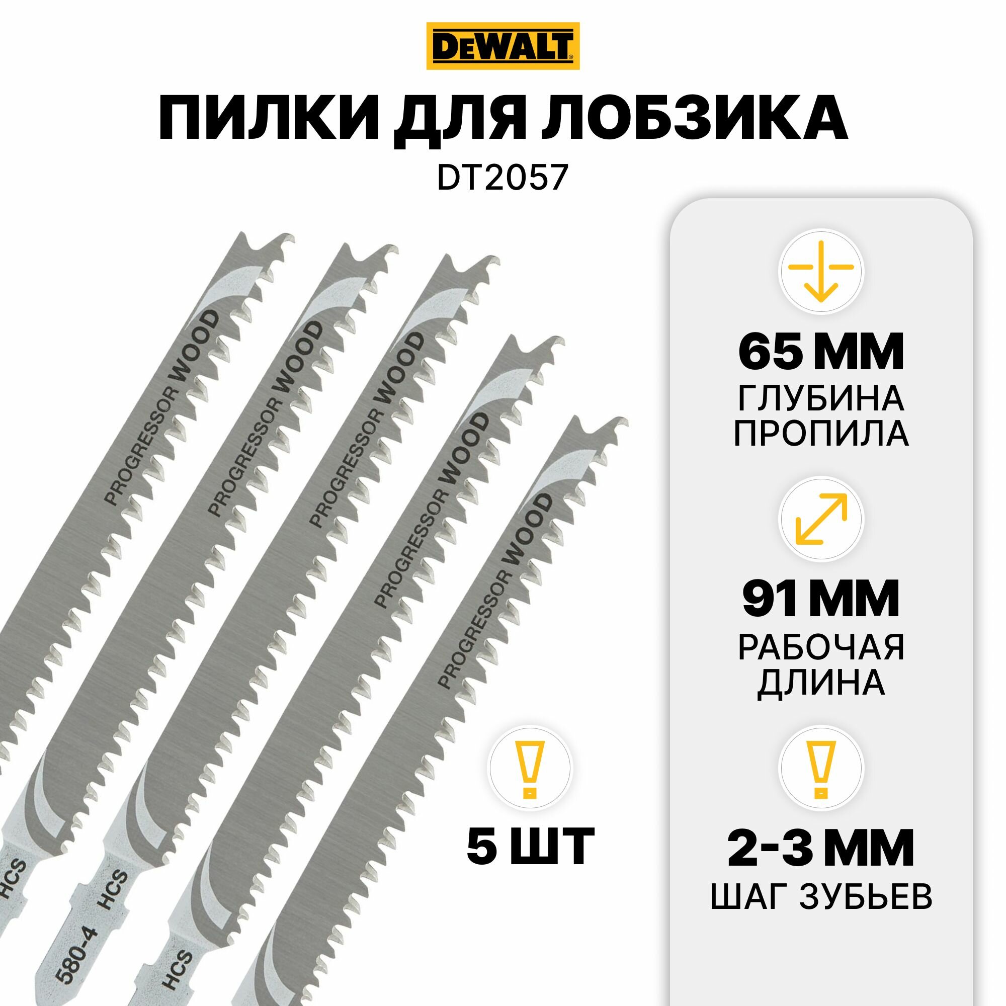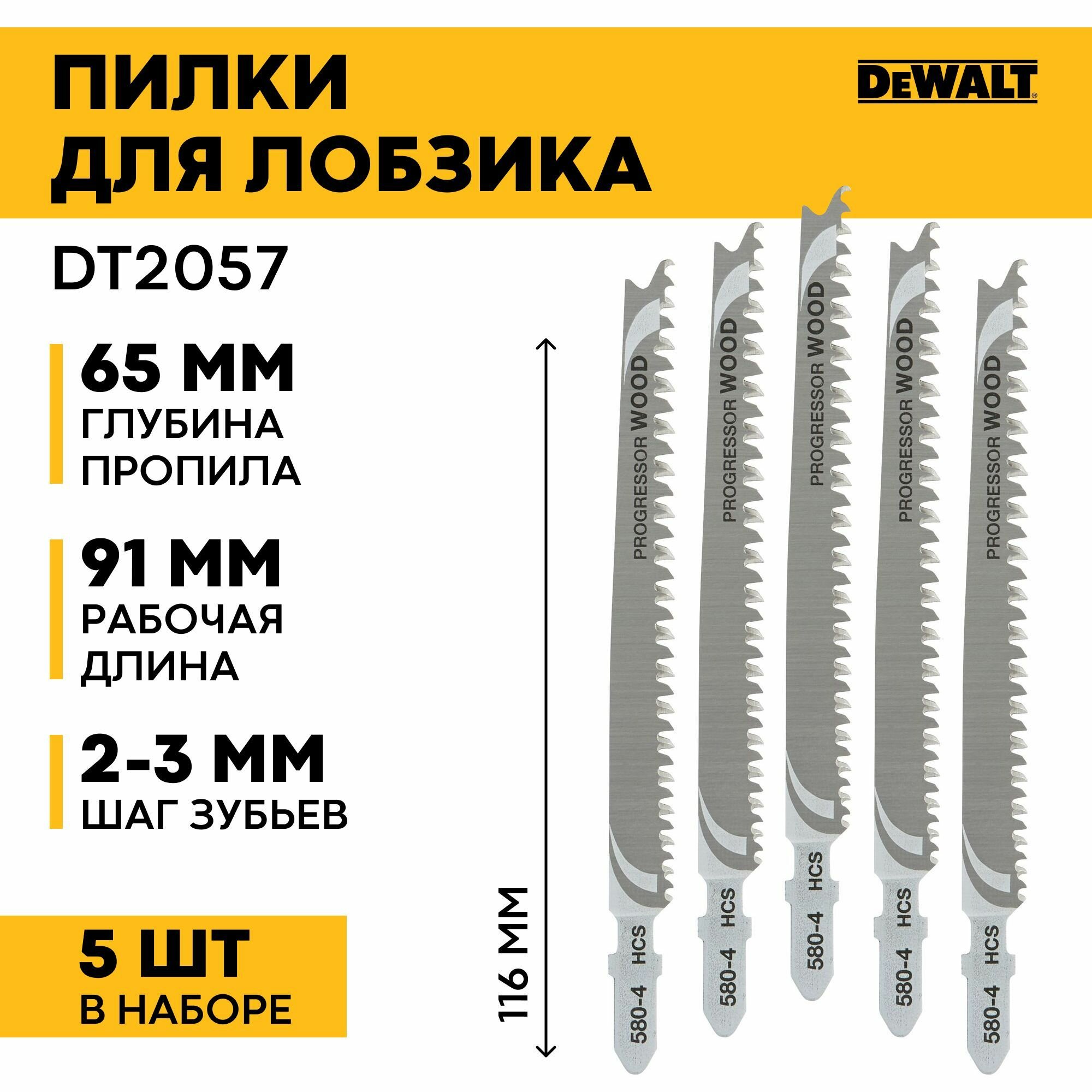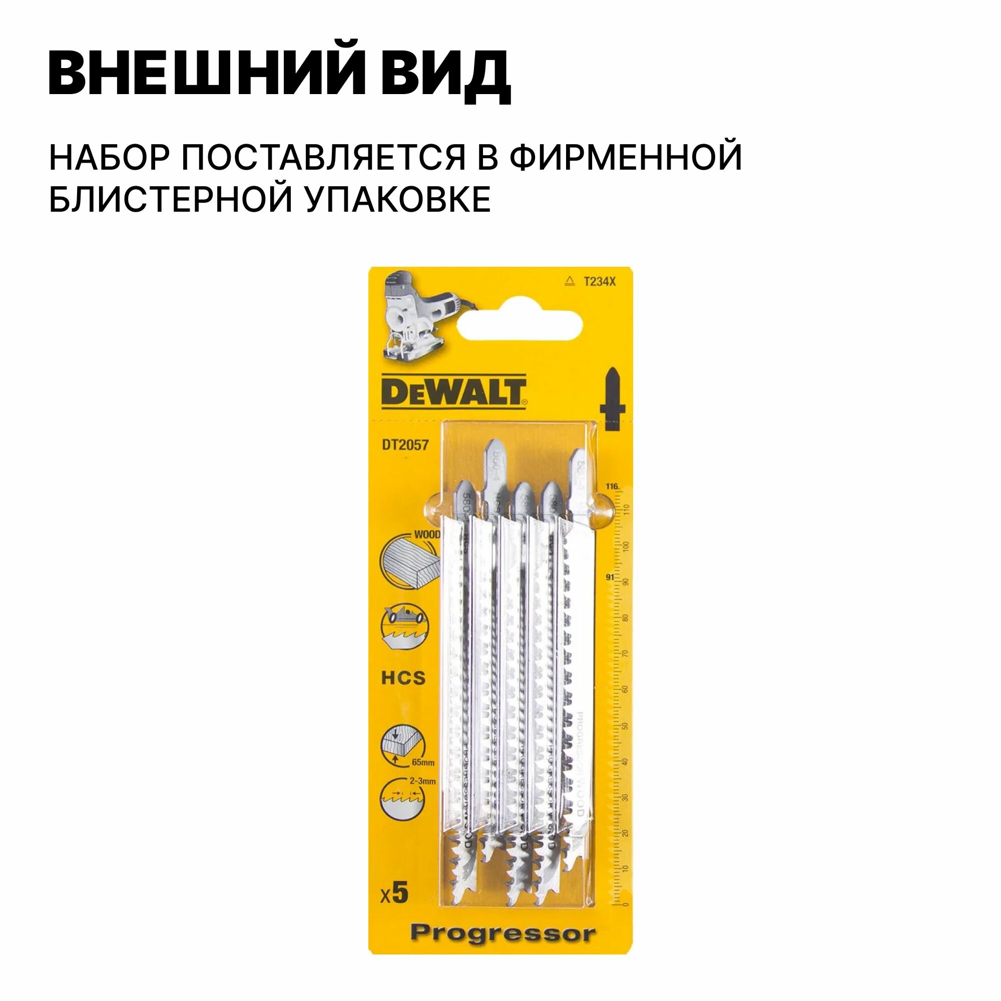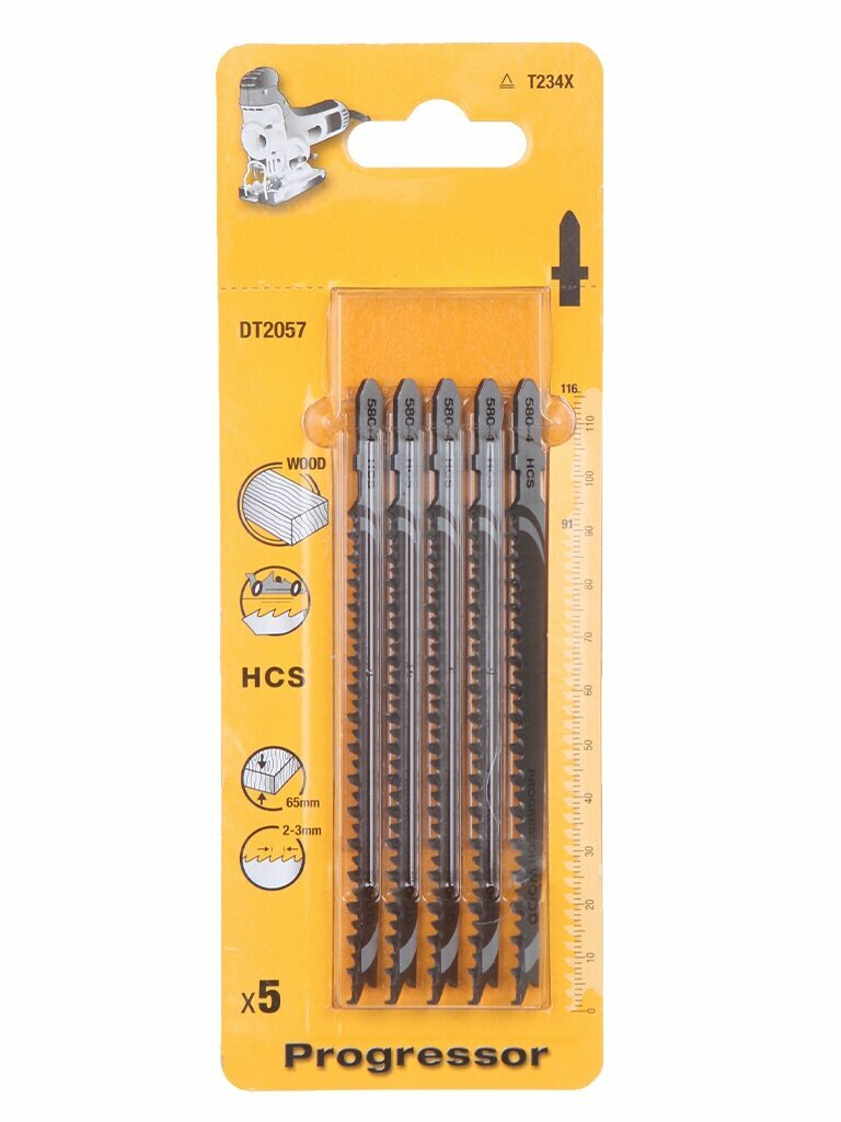 Пилка для электролобзика по дереву 116х91х2-3 мм DeWALT DT2057-QZ (T234X, HCS, Progressor - чистый рез, 5 шт.)