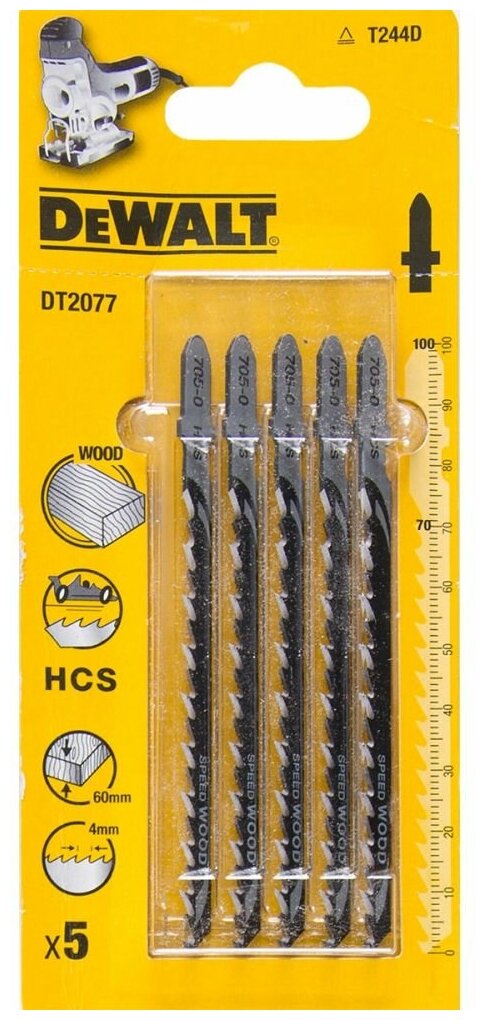 Пилки для лобзика DeWALT DT2077-QZ по дереву HCS T 244 D, 5шт.