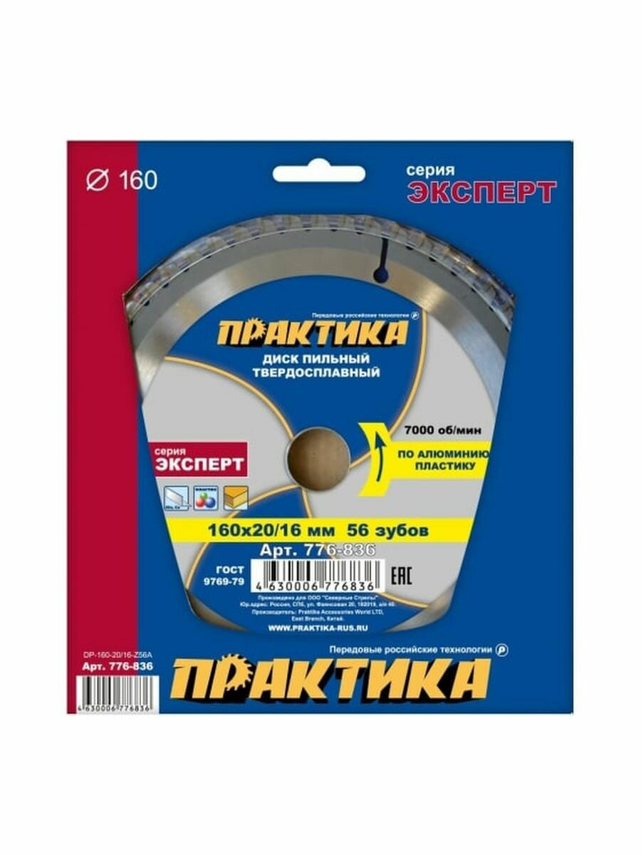 Диск по алюминию ПРАКТИКА 776-836 dp-160-20/16-z56a