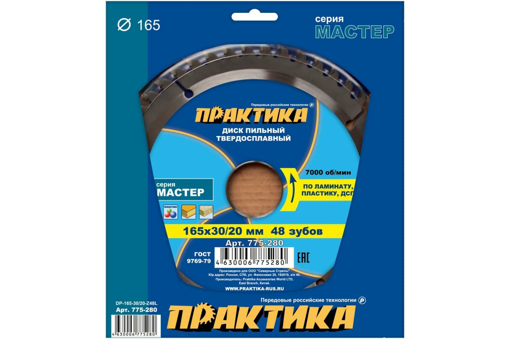 На сегодняшний день товар «Диск по ламинату ПРАКТИКА 775-280 dp-165-30\20-z48l» можно купить с кешбеком в 2 магазинах: bigam, Яндекс.Маркет