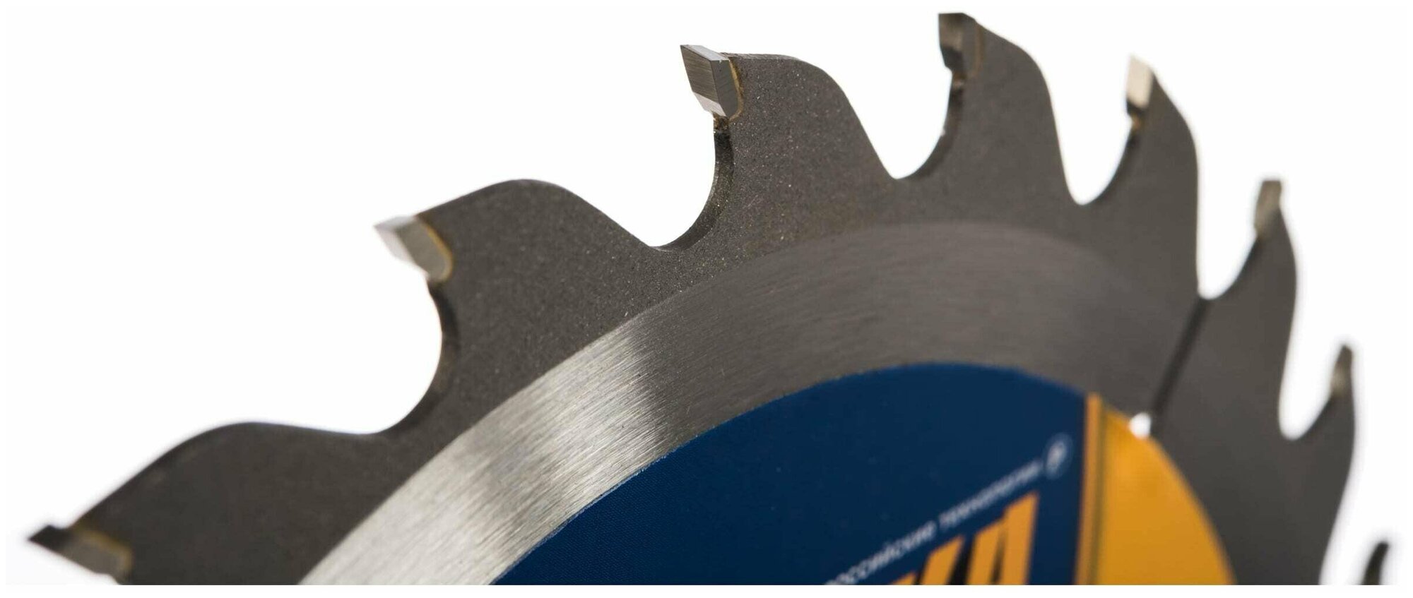 Пильный диск по дереву и ДСП. ГОСТ 9769-79. Серия "Мастер". Высококачественный диск для ручных дисковых пил и станков. Твердость тела HRC 45-46, напаек из карбида вольфрама (сплав ВК8) HRC. 90-93. Угол атаки зуба + 15°.