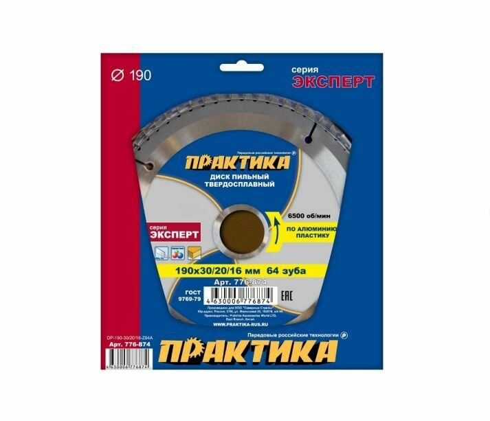 На сегодняшний день товар «Диск по алюминию ПРАКТИКА 776-874 dp-190-30/20/16-z64a» можно купить с кешбеком в 2 магазинах: bigam, Яндекс.Маркет