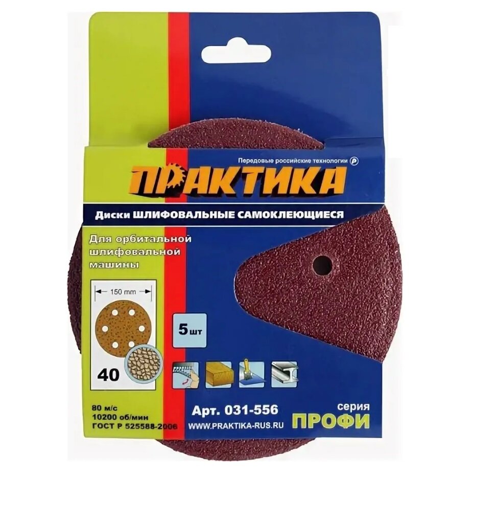 Круги шлифовальные самоклеящиеся с отверстиями для пылеудаления. ГОСТ 8692-88, ГОСТ Р 52588-2006. Серия "Профи". Предназначены для проведения шлифовальных работ с помощью орбитальной шлифовальной машины. Используются для обработки деревянных и металлических плоских поверхностей, снятия с них краски, лака, ржавчины, заусенцев. Изготовлены из высококачественного абразивного материала. В полуоткрытой картонной упаковке с евроотверстием по 5 штук.