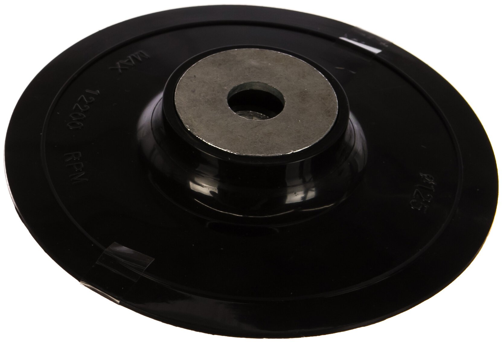 Тарелка опорная шлифовальная пластиковая для УШМ с гайкой М14. Серия "Эксперт". Предназначена для крепления абразивных шлифовальных кругов на фибровой и тканевой основе с центральным отверстием. Идеально подходит в качестве опоры для полужёстких абразивных торцевых кругов. Для грубого шлифования дерева, металла, камня, снятия лакокрасочных покрытий.