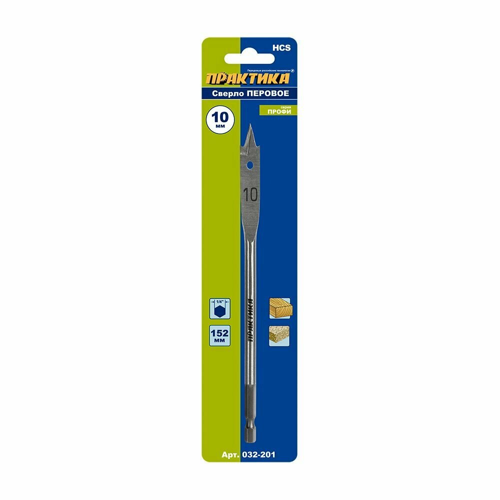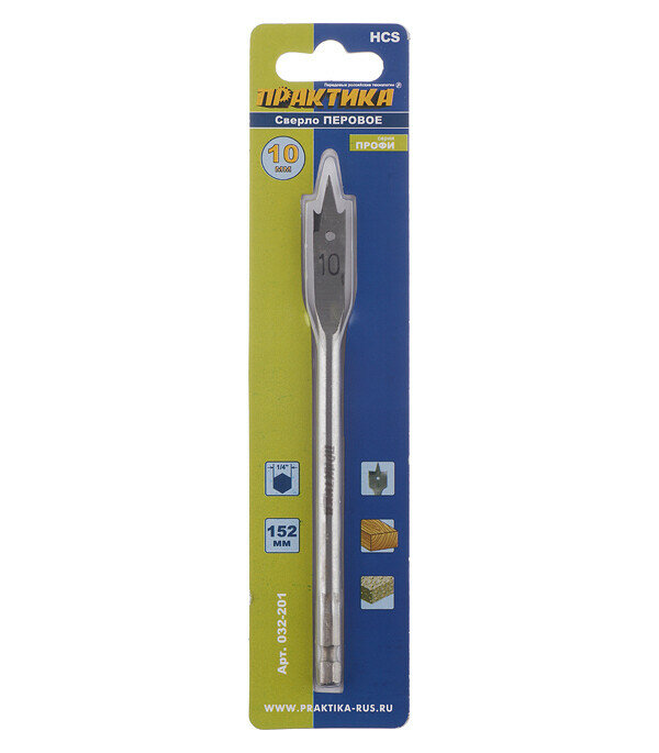 Перовое сверло по дереву ПРАКТИКА 032-201 10x152мм перовое